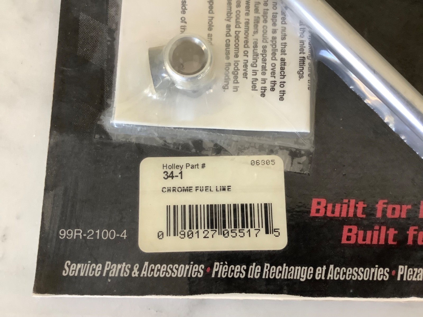 HOLLEY 34-1 Dual Feed Carburetor Chrome Fuel Line Kit, Sealed Packaging