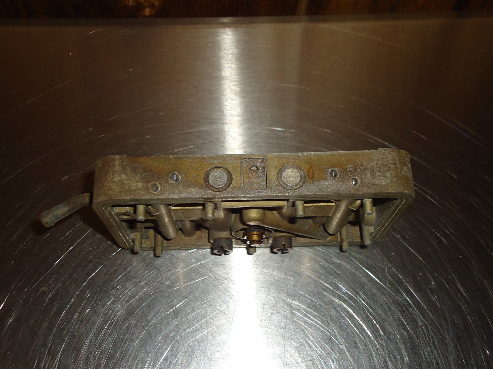 Holley carburetor primary metering block. Block has number 5975 stamped in it. Metering block has power valve provision and idle circuits. Accelerator pump passage is open. Block was removed from a core carburetor. It is dirty and shows some patina from use and sitting. See pics for condition. Can not be returned if installed, ran or has been modified. Must be returned in the same condition as shown.