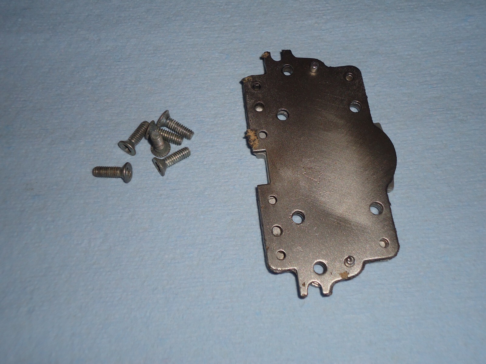 Holley 4-barrel carburetor carb vacuum secondary metering plate, part number 34r-9716-b # 6. Removed from a core carb. It is dirty and shows some patina from use and sitting. See pics for condition.