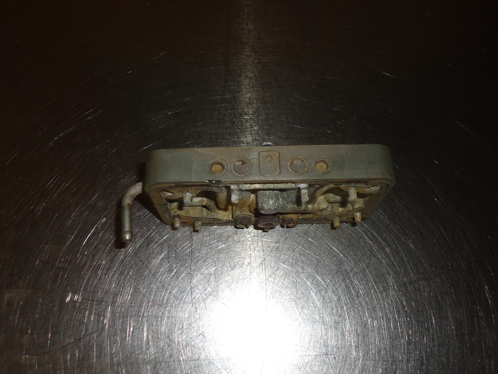 Holley carburetor metering block. Metering block is factory untouched. Block has number 62103 7866 stamped in it. Metering block has power valve provision and idle circuits. Accelerator pump passage is open. Block was removed from a core carburetor. It is dirty and shows some patina from use and sitting. See pics for condition. Can not be returned if installed, ran or has been modified. Must be returned in the same condition as shown.
