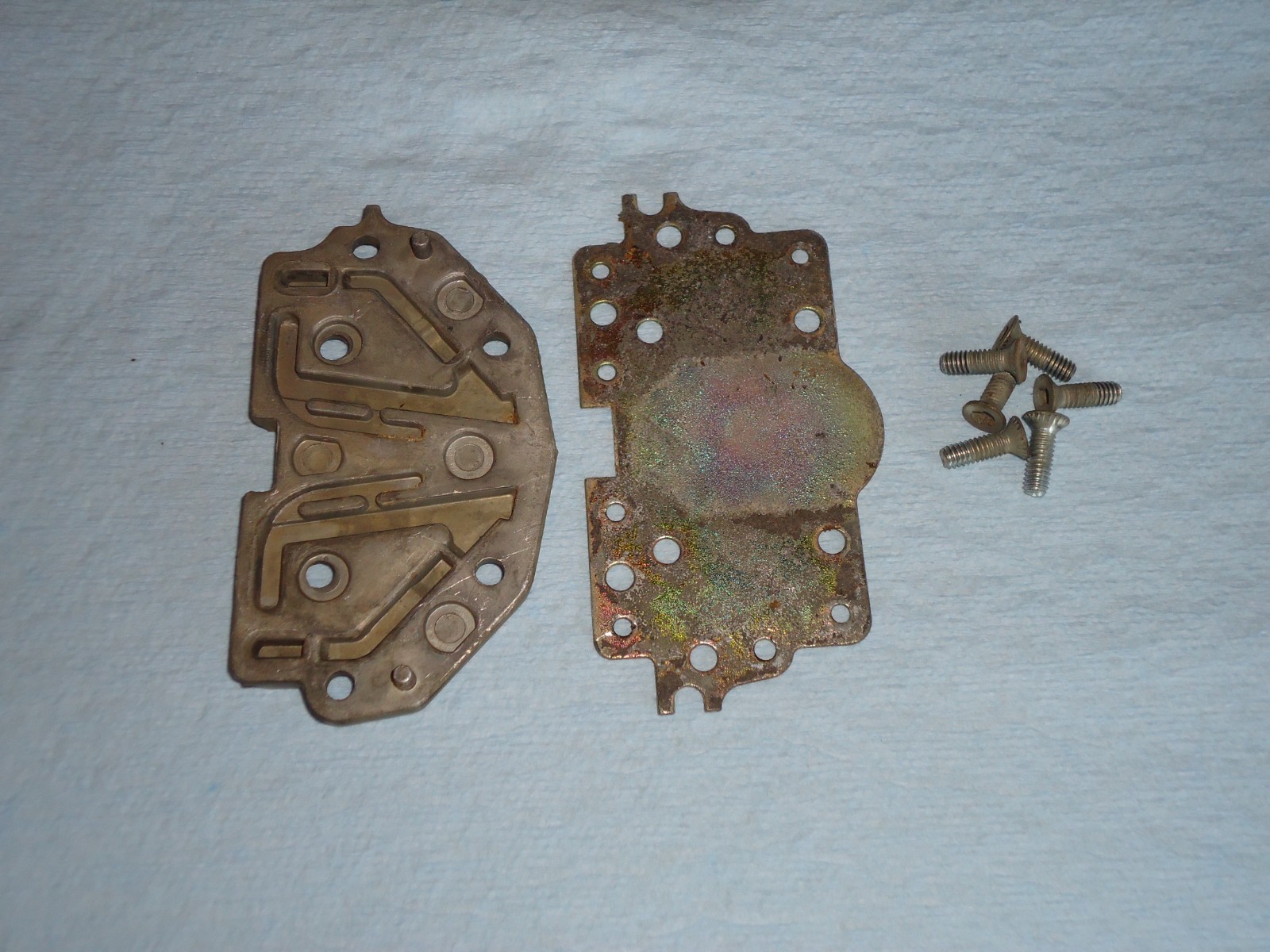 Holley 4-barrel carburetor vacuum secondary metering plate, part number 34r-10465-b # 2. Pieces are dirty and show some patina from use and sitting. See pics for condition.