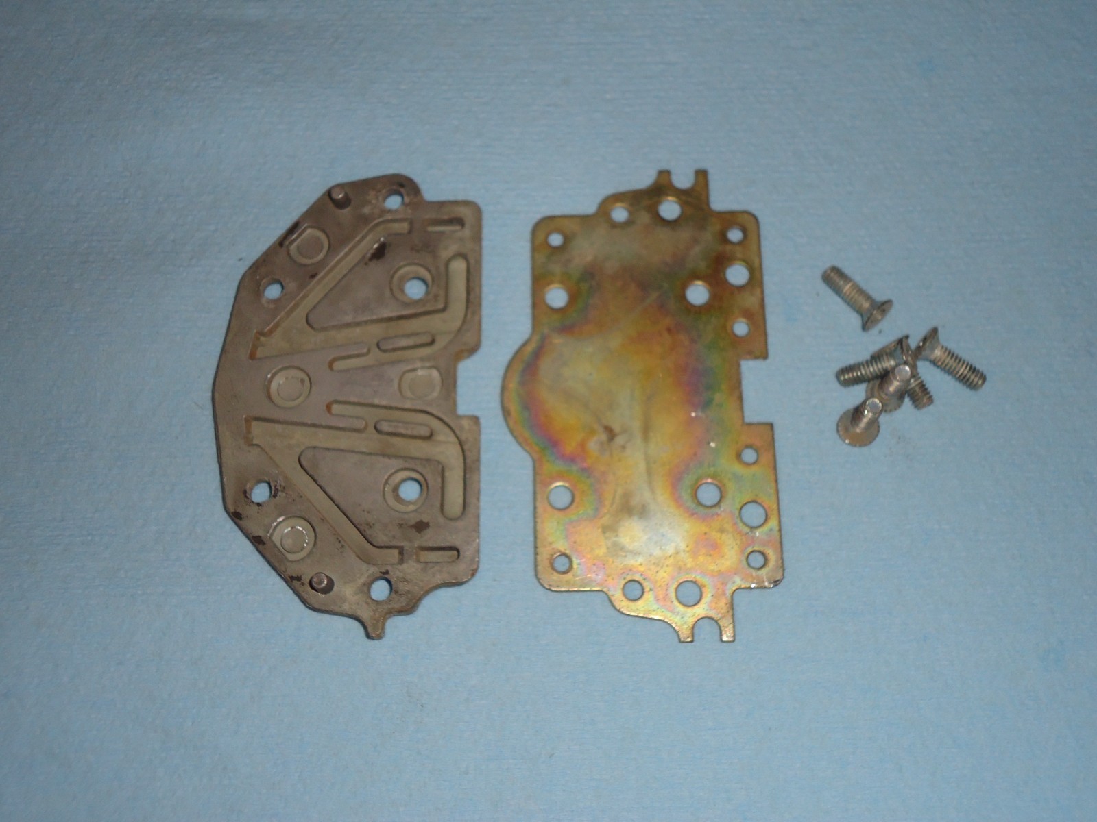 Holley 4-barrel carburetor vacuum secondary metering plate, part number 34r-6153-b # 19. Pieces are dirty and show some patina from use and sitting. See pics for condition.