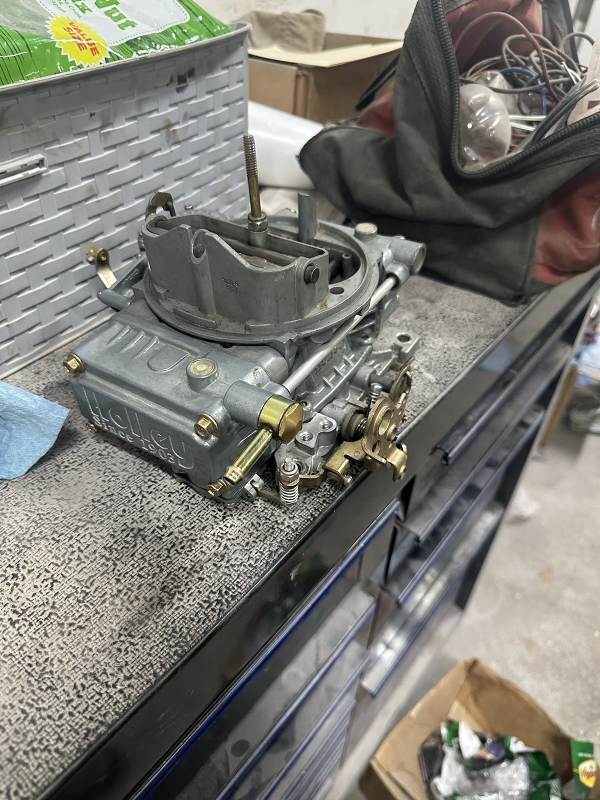 Holley 600 4 barrel vacuum secondary carburetor. Just put a rebuild kit in it. Has factory jets and spring just too small for my application. Came off running car. Cleaned and ready to go
