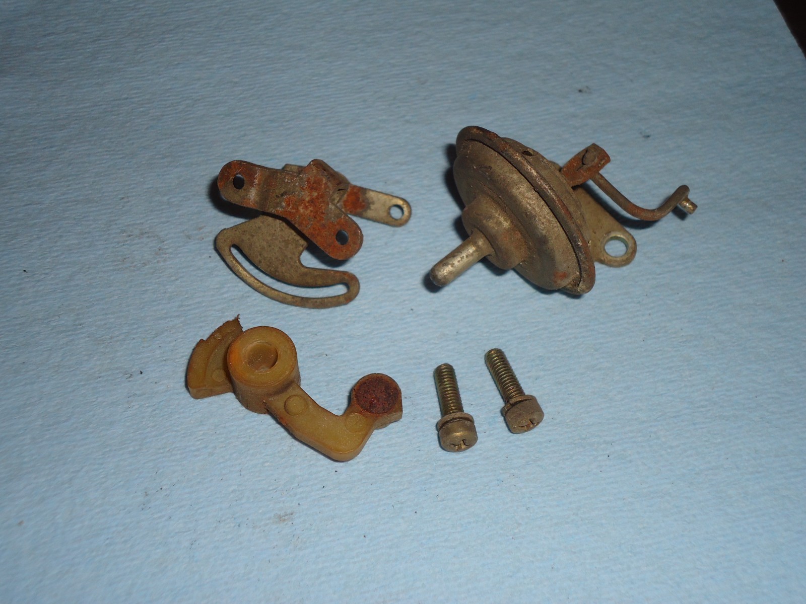 Holley carburetor choke pull off parts lot. We are not familiar with all makes and models this fits. Please verify pics match your application. Pieces are dirty and show some patina from use and sitting. Pull off depresses and holds with finger on tube. See pics for condition. Can not be returned if installed, ran or has been modified. Must be returned in the same condition as shown.