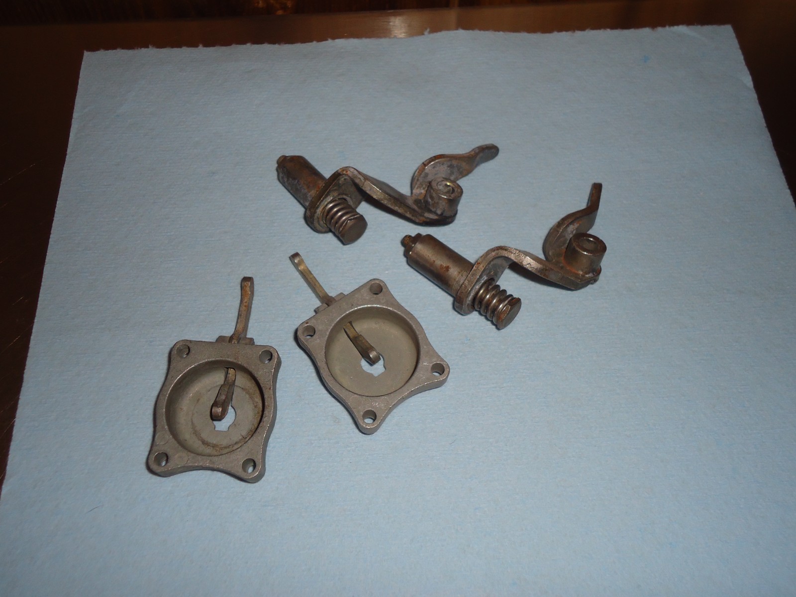 Holley carburetor 50cc accelerator pump cover arm lot. Lot includes (2) covers and (2) arms. Removed from a core carb. They are dirty and show some patina from use and sitting. See pics for condition. Can not be returned if installed, ran or has been modified. Must be returned in the same condition as shown.