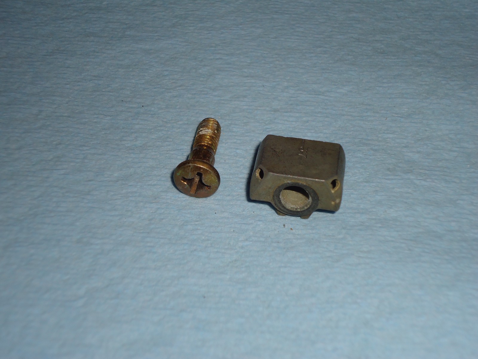 Holley carburetor nozzle with screw, part number 121-237. Pieces are dirty and show some patina from use and sitting. See pics for condition.