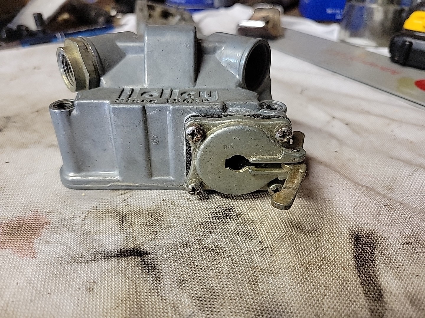 Original Holley primary Float bowl. Missing the needle valve.