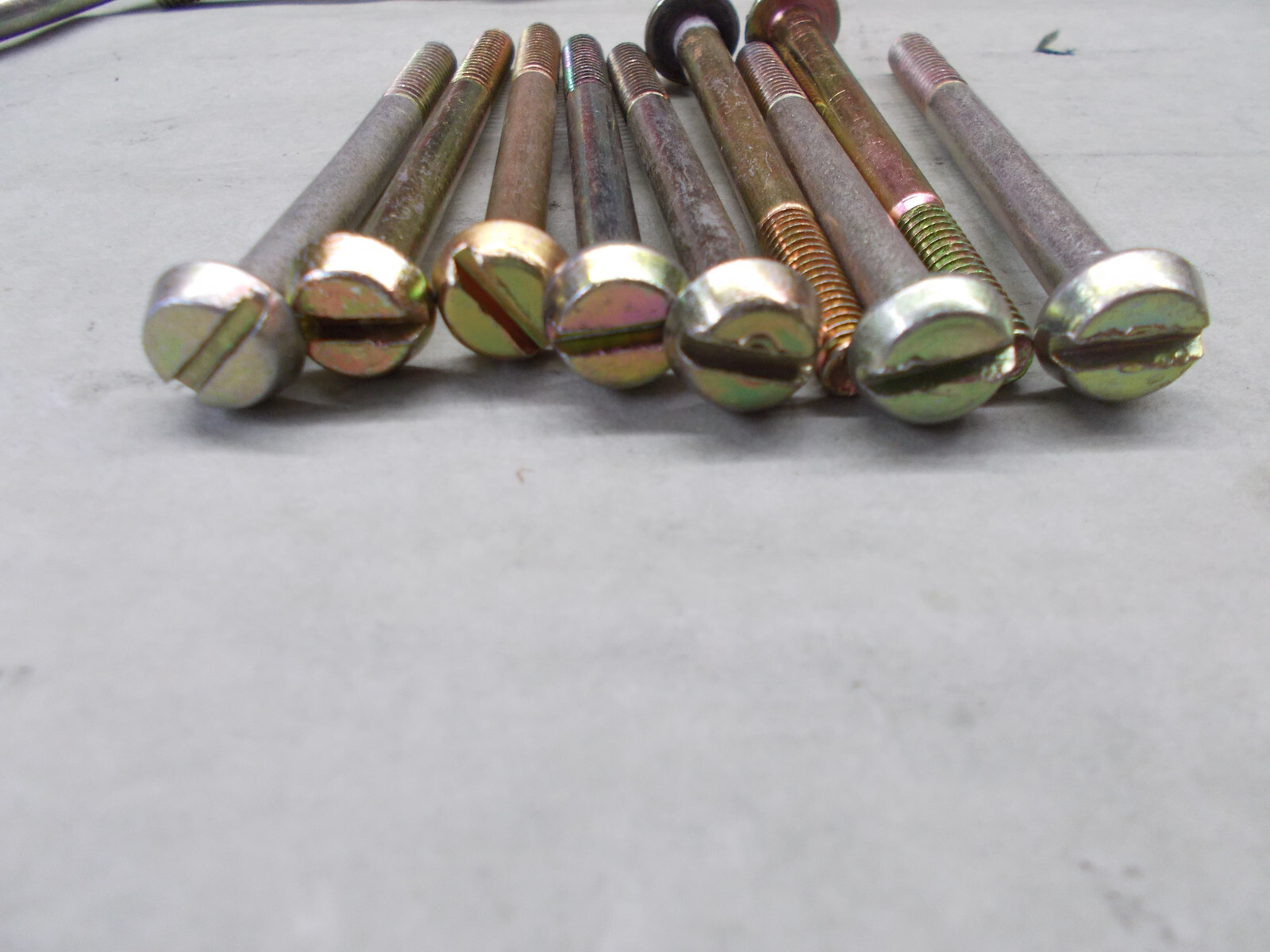 Holley original fuel bowl slotted headscrews for a 4150. They have been replated yellow dichromate zinc coating. You will receive 8 screws 2.5" Long NOT SHOW may have a few marks on them. **They are used refinish NOT NEW**