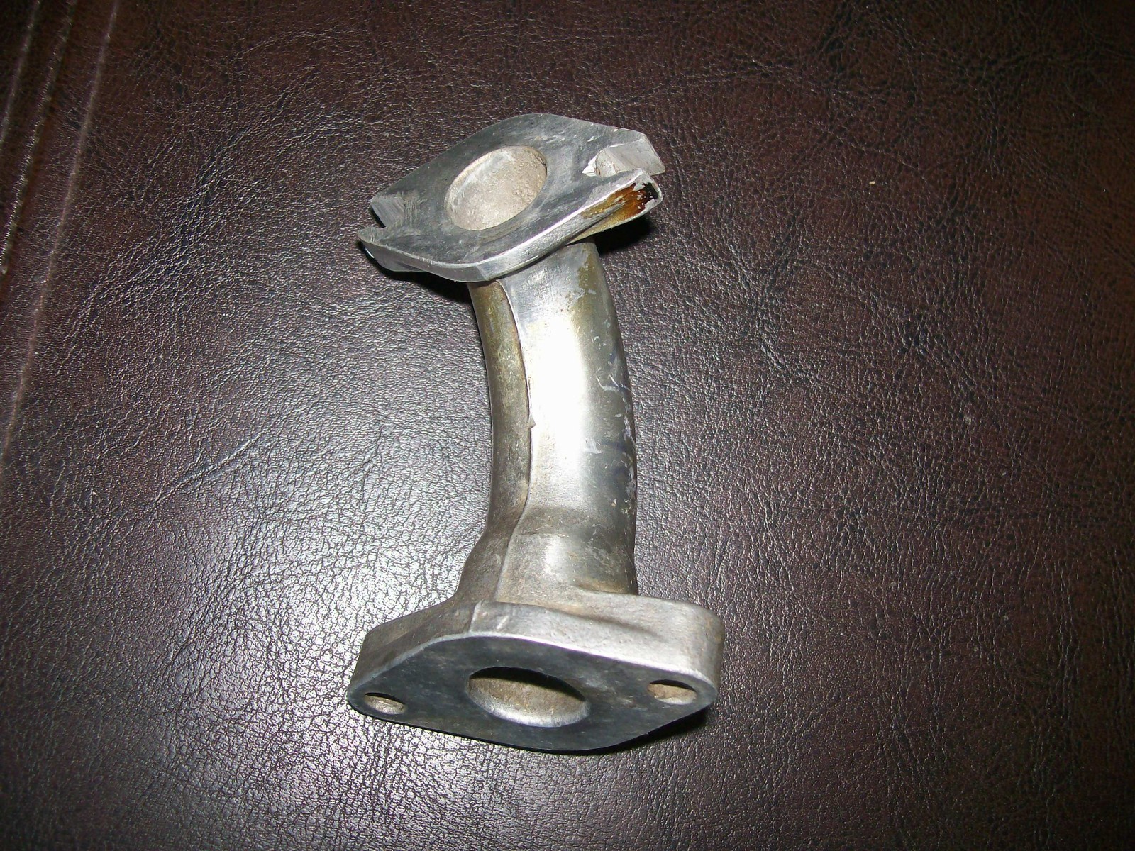 The Honda CT90 Trail 90 1966-68 Intake manifold is a vintage part made of aluminum, featuring a silver color and originating from Japan. This intake manifold is designed specifically for the Honda brand, with a fuel type of gasoline. It is not a performance part, and does not have universal fitment, making it a perfect fit for those looking to restore or maintain the authenticity of their classic Honda CT90 motorcycle from the 1960s.