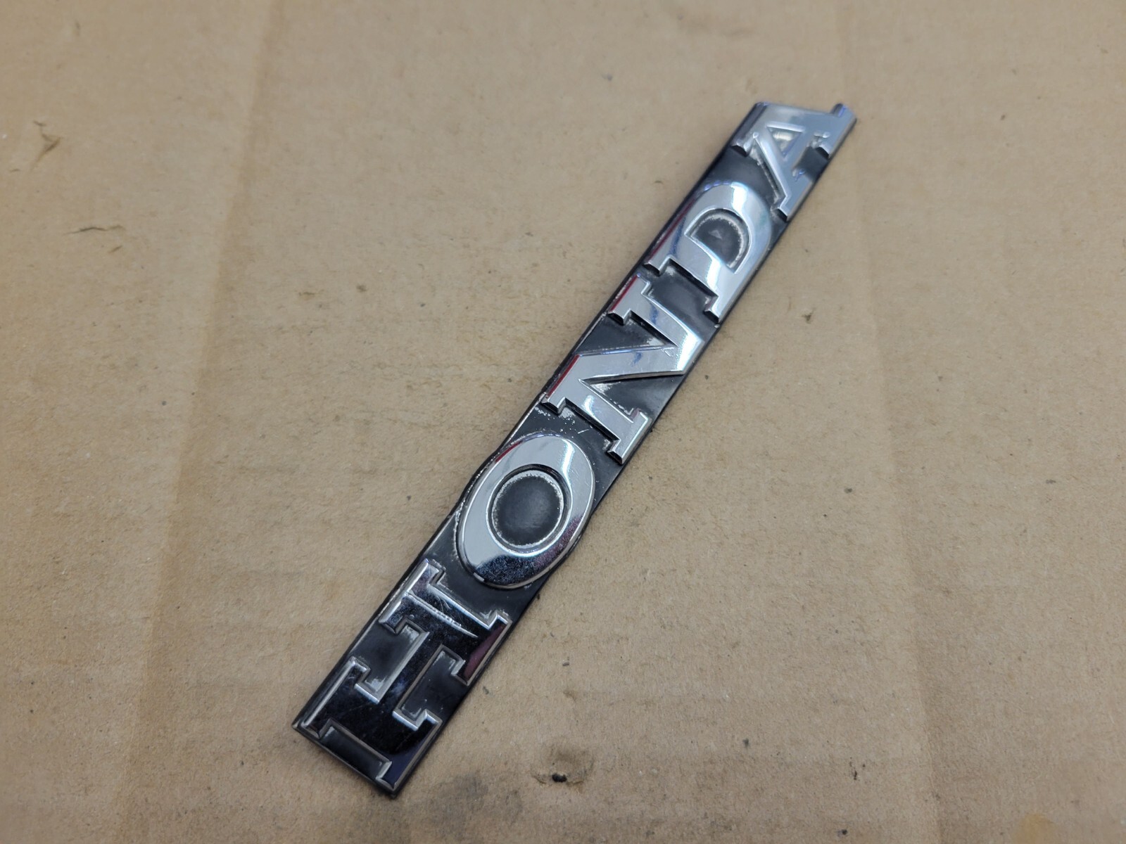 Honda OEM chrome and black plastic 5 5/8" vintage emblem badge logo nameplate name plate insignia good condition with average wear. All of the mounting pins are good. It will need new adhesive for installation. There is no part number, so please review the pictures to ensure that this is the correct part for your application.