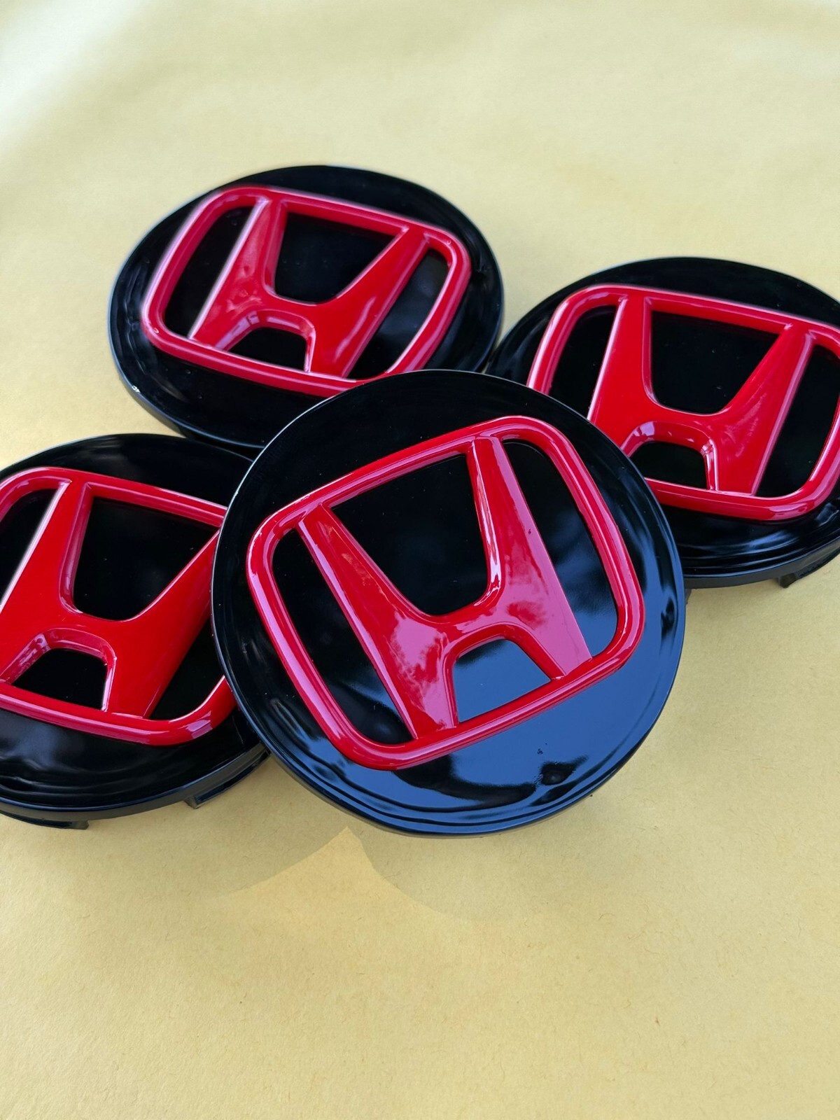 HONDA Set Of 4 Black/Red Wheel Center Caps 69MM - - Satisfaction Guaranteed