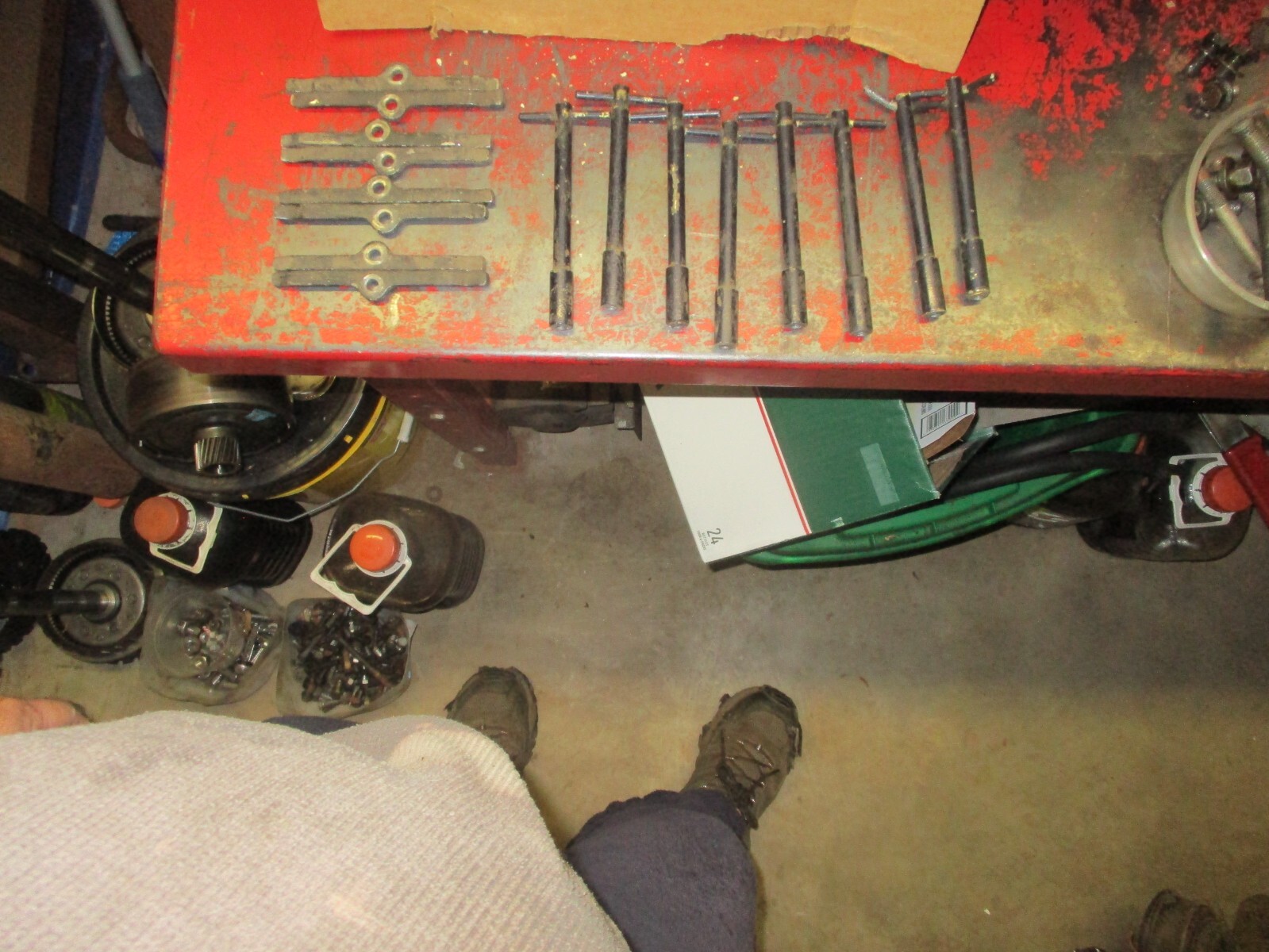 old vintage aluminum valve cover t handles w/ steel retainer plates theres 2 that will need the top "t" part straightened