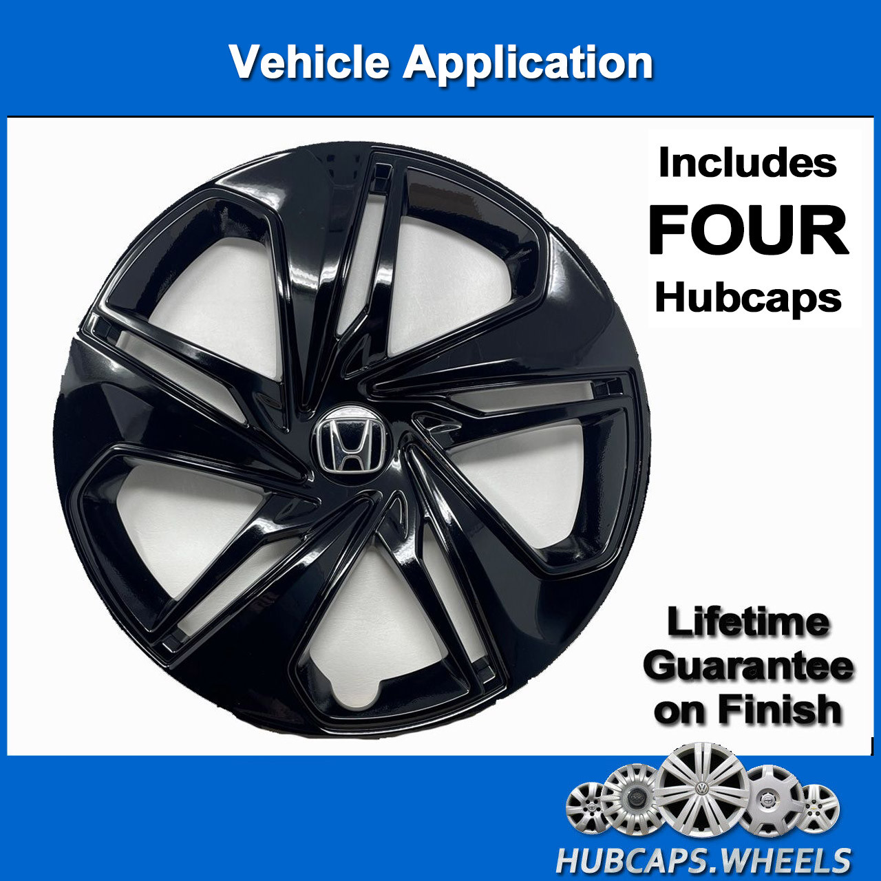 Honda Civic (2016-2021) Genuine Factory 16-inch Hubcap - Gloss Black (4 Pieces)This is a factory-original Honda 16-inch hubcap. These are genuine OEM wheel covers that have been professionally refinished with a premium gloss black paint for a custom look. The quality of the authentic factor hubcap and our beautiful paint refinishing process are far superior to cheap aftermarket sets.These hubcaps will fit any of the following Honda models that have 16" standard steel wheels:Civic: 2016-2021We have a professional cleaning process and commercial paint booth to give a quality finish as good or better than the original factory paint. We're so confident in our process that we give a lifetime guarantee against fading and peeling on every refinished hubcap we sell!Like New. Lifetime Guarantee on the finish!Manufacturer Part #: 44733-TBA-A23Make: HondaModel: CivicYear: 2021, 2020,2019,2018,2017,2016Size (inches): 16Finish: BlackNotes:  Hubcap for Honda Civic 2016-2021 OEM 16-in Custom Gloss Black 55103 (Set of 4) -  _Professional Cleaning and Reconditioning_ * * * ### **Lifetime Guarantee on Like-New Finish!** None of the hubcaps we sell are cracked, broken, or missing pieces. We have a professional refinishing process using commercial equipment, just like a body shop. We are so confident in our process perfected over 20 years of experience, we offer a **LIFETIME GUARANTEE** that the hubcap we sell you will never fade or peel! * * * #### FREE SHIPPING! ##### **All Items are In Stock and Leave Our South Carolina Warehouse Within 1 Business Day** Before submitting your order, please double-check that your “ship to” address is correct. If additional shipping charges are incurred by hubcaps.wheels as a result of an error you make with your address, we'll need to pass that exact cost on to you. Because UPS will not deliver to a PO Box, in some cases, we may ask you to provide a physical address. If merchandise is not received within 14 business days, please notify us in case the package was lost in transit. Any orders refused at time of delivery will be refunded less the shipping charges incurred to your address and the shipping charges incurred back to our facility. ##### 30-DAY RETURN PERIOD All returns must be made within 30 days from the date of original delivery to you. ##### SAME CONDITION AS YOU RECEIVED IT Returned items must be in the same condition that you received it. If you used it on your vehicle or caused any damage to it, we cannot accept a return. ##### RETURN PACKAGING To ensure a quick refund, include a copy of the packing slip that was in the original package; or print the email receipt we sent you. **Be sure to always put the hubcaps back in the plastic bags they came in and always use the cardboard separators. If you do not package with the bags and cardboard, any shipping damage will be your responsibility.** ##### RETURN SHIPPING Cost of return shipping is your responsibility. Please feel free to send via USPS, UPS, or FedEx, whichever is most convenient for you. We strongly recommend that you send with a tracking number in case your returned item becomes lost or damaged before it reaches us. ##### **ABOUT OUR COMPANY** Since 1999, we're one of the only automotive parts companies in the USA that offers professional-grade reconditioning and refinishing of OEM hubcaps. This means you can purchase the **same quality and BIG savings over dealer prices**. We also offer budget-oriented brand new replica hubcaps and sets that are better quality than cheap, brittle sets available from many other sellers.