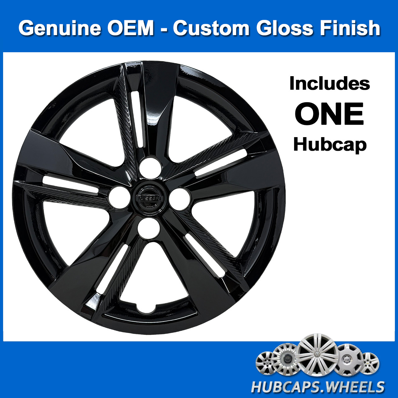 Hubcap for Nissan Kicks 2018-2024 OEM 16-inch Custom Gloss Black 53100, 1 Piece