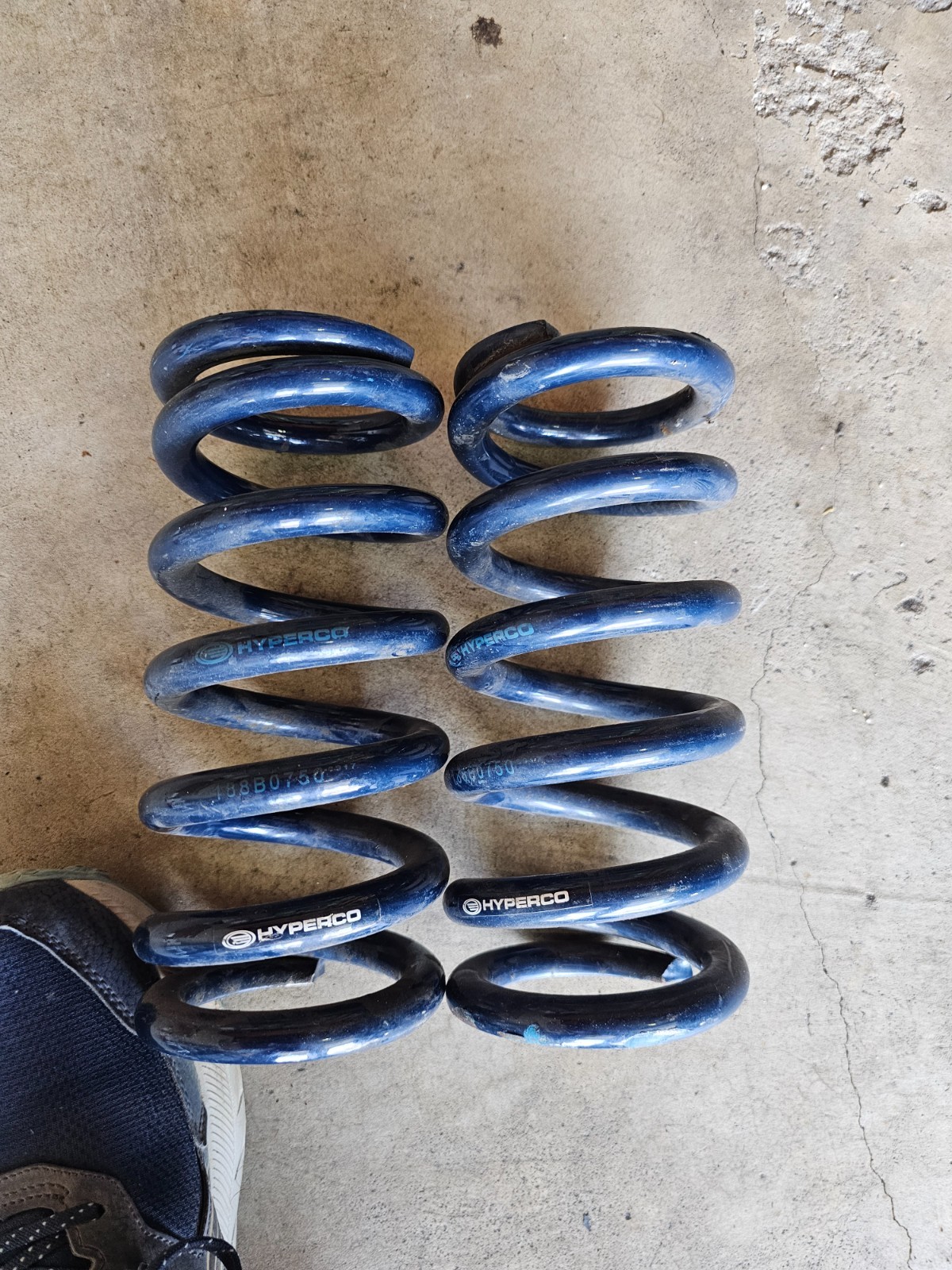Selling my race spares. For sale is a pair of Hypercoil 188B0750 linear coilover springs. 2.5 inch (63.5mm) inside diameter. 8 inch (203mm) length. Spring rate 750 lb/in (13 kg/mm). Springs are in good shape but dirty. Used for autocross only.