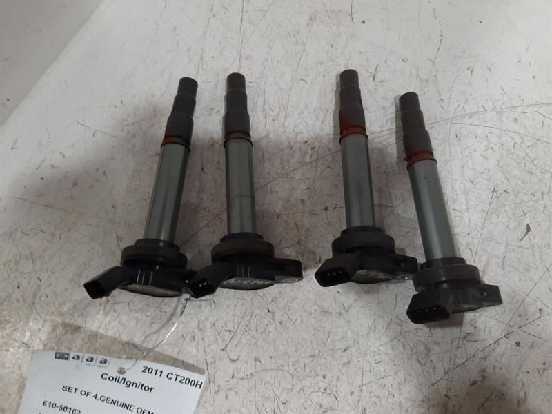 Item Description **6 MONTH WARRANTY!! 60 DAY NO HASSLE RETURNS!!** **This for a USED OEM Ignition Coil/Coils/Igniter Assembly pulled from a 2011 CT200H with 146000 actual miles on it.** **Here are our part notes about this specific part:** **SET OF 4,GENUINE OEM PART** **Our Part #: 610-50162, 3978575** **Our Stock#: 4W4701** Please see the fitment section below to make sure this will fit your vehicle. Pay special attention to any options listed!!! In some cases, it may only fit vehicle with certain options or specific ID#s as listed below. **C-HR 18-22 (coil)** **COROLLA 09-12 Coil; 1.8L (2ZRFE engine)** **COROLLA 13 Coil; (1.8L, 2ZRFE engine)** **COROLLA 14-16 Coil; (1.8L)** **COROLLA 17 Coil; (Sdn, 1.8L)** **COROLLA 18 (coil), (Sdn, 1.8L)** **COROLLA 19 (coil), Sedan (1.8L)** **COROLLA IM 17-18 (coil), (Htbk)** **LEXUS CT200H 11-17** **MATRIX 09-13 Coil; 1.8L (2ZRFE engine)** **MATRIX 14 Coil; (Canada market), (1.8L, 2ZRFE engine)** **PRIUS 10-11 Coil;** **PRIUS 12-15 Coil; Prius (VIN DU, 7th and 8th digit)** **PRIUS 12-15 Coil; Prius Plug-in (VIN DP, 7th and 8th digit)** **PRIUS 12-16 Coil; Prius V (VIN EU, 7th and 8th digit)** **PRIUS 17 (coil); Prius V (VIN EU, 7th and 8th digit)** **PRIUS 18 (coil), Prius V (VIN EU, 7th and 8th digit)** **SCION IM 16** **SCION XD 08-14** Whats Included? Whats Included? FAQ/ Help Shipping Payment Returns/Warranty #### Whats Included? ``` Here is a short description of what will generally be included with your item. If you would like more information or are unsure if something will come with your item, PLEASE ASK!! A/C Compressor: Includes the clutch/pulley assembly A/C Condenser: Sensors and hoses are not included ABS Units: Include the ATTACHED electronic module unless otherwise noted Alternator: Includes the pulley. Any brackets are not included Axle/CV shaft: Does not include the axle nut Blower Motor: Include the squirrel cage/fan blade Caliper: Includes the bracket and slides. Slides are not covered under warranty Column Switch: Includes wiring (if applicable) up to the first point it can be unplugged Control Arm: Includes the ball joint and any bushings Coolant Overflow Bottle: Cap is included Cowl Vent Panel: See Our Part notes, often sold as one side only Differential Carrier: Does not include axles Door Trim Panel: Includes handle and armrest. Does not include window/lock switches Engine: Included for convenience unless otherwise noted. These parts are not covered under warranty: Intake manifold, fuel injectors, oil pan, sensors, water pump Not included: Throttle body, Turbo, wiring harness exhaust manifold (may be left on in certain cases) Exhaust Manifold: Does not include turbo where applicable Fan Assembly: Includes motors, shroud, and blades. Fuel injectors: See our part notes Fuel Filler Door: Includes hinge. Does not include bolts/hardware Fuel Pump: Includes sending unit and any molded hoses that are non-removable Headlight: Brackets are included unless otherwise noted. HID headlights include the bulbs and ballast Hub: Includes wheel studs Ignition Coil(s): See part notes Interior Rear View Mirror: Does not included bracket glued to windshield Jack: See part notes. If noted as assembly, it will include the lug wrench Mass Airflow Sensor: Does not include housing unless pictured Power Steering Pump: Includes pulley and ATTACHED reservoir. Remote reservoirs and brackets will not be included Power Steering Gear: Includes pitman arm Rack and Pinion: Includes tie rods but they are not covered under warranty Radio: Pay special attention to our fitment description. Often times radios are more than one piece and we sell them each separately Spindle/Knuckle: Does not include hub unless noted Starter: Includes solenoid Strut: Struts are left assembled and include top plate, spring, and dust boot (dust boots on used struts are rarely in perfect shape) Stabilizer Bar: Does not include links or bushings Sunvisor: Does not include clip Taillight: Pay special attention to fitment as we list the trunk lid mounted taillights as well as the corners. Does not include bulbs Temperature Control: Includes all knobs, buttons, and sliders Throttle Body: Includes sensors but they are not covered under our warranty Transmission: Automatic transmissions include torque converters and sensors. Many newer transmissions require a relearn/programming procedure. Manual transmissions do not include any part of the clutch system. Transfer Case: Does not include electric shift motor Washer Reservoir/Bottle: Includes cap unless noted Wheel/Rim: Does not include center cap, tire, or lug nuts Window Regulator: Does not include motor unless noted (most are noted with motor) Wiper Motor: Does not include arms or transmission unless noted Wiper Transmission: Does not include motor or arms unless noted ``` FAQ/ Help #### FAQ/ Help ``` Will this fit my vehicle? Is this the right part? This is the most common question that we get. The fitment information can be confusing if you don't buy replacement parts everyday. Please contact us if you are unsure!! We try to respond to questions as quickly as possible and we are more than happy to answer any questions as best as we can. In order to speed up the process, it is very helpful, but not required, for you to send us your full VIN number along with your question. It looks like its the same color as my car, how can I tell for sure? The best way is to match the manufacturer paint code. Most of the time we include the paint code in our part notes. If you don't know what a paint code is or where yours is located, please feel free to ask. We are happy to help. I only see photos of the vehicle and not the actual part you are selling. Can you send me some? Our most recent listings include actual photos when we can provide them. If you would like an actual photo, we are more than happy to take one after the purchase for your approval before the part ships. In certain cases we will take actual photos before a purchase is made. This is on 