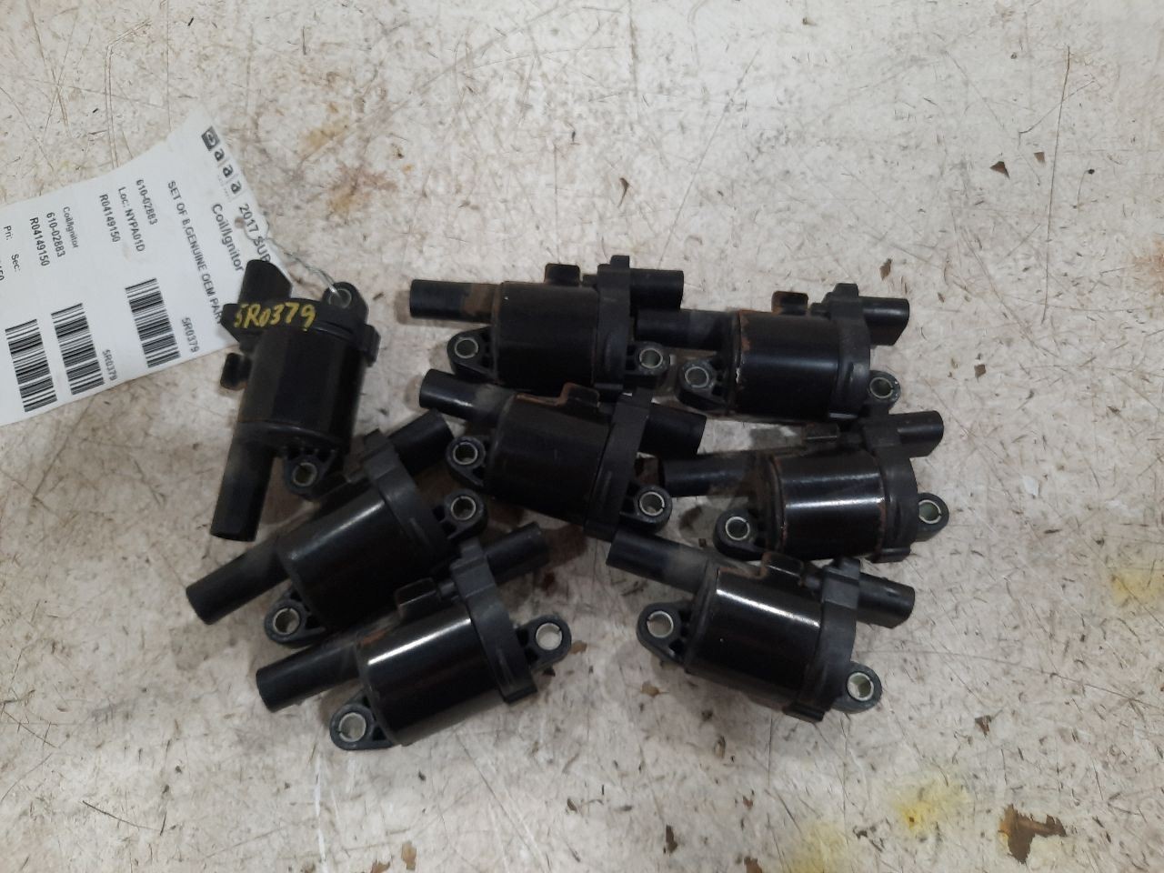 Item Description **6 MONTH WARRANTY!! 60 DAY NO HASSLE RETURNS!!** **This for a USED OEM Ignition Coil/Coils/Igniter Assembly pulled from a 2017 SUBURBN15 with 165000 actual miles on it.** **Here are our part notes about this specific part:** **SET OF 8,GENUINE OEM PART** **Our Part #: 610-02883, 4149150** **Our Stock#: 5R0379** Please see the fitment section below to make sure this will fit your vehicle. Pay special attention to any options listed!!! In some cases, it may only fit vehicle with certain options or specific ID#s as listed below. **CAMARO 16 6.2L** **CAMARO 17-18 6.2L, Delphi** **CORVETTE 14-20 round shaped** **CTS 16-19 6.2L (supercharged), Delphi** **ESCALADE 15-20** **ESCALADE 21-23 Delphi** **ESCALADE ESV 15-20** **ESCALADE ESV 21-22 Delphi** **SIERRA 1500 PICKUP 14 round shaped** **SIERRA 1500 PICKUP 15-18** **SIERRA 1500 PICKUP 19 classic style (mirrors mount in window corner)** **SIERRA 1500 PICKUP 19 new style (mirrors mount on door skin), 5.3L, ID 12699383** **SIERRA 1500 PICKUP 19 new style (mirrors mount on door skin), 6.2L, ID 12699383** **SIERRA 1500 PICKUP 20 5.3L, ID 12699383** **SIERRA 1500 PICKUP 20 6.2L, ID 12699383** **SIERRA 1500 PICKUP 21 (Gasoline), 5.3L, ID 12699383** **SIERRA 1500 PICKUP 21 (Gasoline), 6.2L** **SIERRA 1500 PICKUP 22-23 5.3L, ID 12708496** **SIERRA 1500 PICKUP 22-23 6.2L, ID 12708496** **SIERRA 2500 PICKUP 20-21 round shaped** **SIERRA 2500 PICKUP 22 (gasoline), round shaped** **SIERRA 3500 PICKUP 20-21 round shaped** **SIERRA 3500 PICKUP 22 (gasoline), round shaped** **SIERRA DENALI 1500 14-15 round shaped** **SIERRA DENALI 1500 16-18** **SIERRA DENALI 1500 19-20 5.3L, ID 12699383** **SIERRA DENALI 1500 19-20 6.2L, ID 12699383** **SIERRA DENALI 1500 21 (Gasoline), 5.3L, ID 12699383** **SIERRA DENALI 1500 21 (Gasoline), 6.2L** **SIERRA DENALI 1500 22 ID 12708496** **SIERRA DENALI 2500 20-22 round shaped** **SIERRA DENALI 3500 20-22 round shaped** **SILVERADO 1500 PICKUP 14 round shaped** **SILVERADO 1500 PICKUP 15-18** **SILVERADO 1500 PICKUP 19 classic style (mirrors mount in window corner)** **SILVERADO 1500 PICKUP 19 new style (mirrors mount on door skin), 5.3L, ID 12699383** **SILVERADO 1500 PICKUP 19 new style (mirrors mount on door skin), 6.2L, ID 12699383** **SILVERADO 1500 PICKUP 20 6.2L, ID 12699383** **SILVERADO 1500 PICKUP 20-21 5.3L, ID 12699383** **SILVERADO 1500 PICKUP 21 6.2L** **SILVERADO 1500 PICKUP 22-23 5.3L, ID 12708496** **SILVERADO 1500 PICKUP 22-23 6.2L, ID 12708496** **SILVERADO 2500 PICKUP 20-21 round shaped** **SILVERADO 2500 PICKUP 22-23 (gasoline), round shaped** **SILVERADO 3500 PICKUP 20-21 round shaped** **SILVERADO 3500 PICKUP 22-23 (gasoline), round shaped** **SUBURBAN 1500 15-20** **SUBURBAN 1500 21-23 Delphi** **TAHOE 15-20** **TAHOE 21-23 Delphi** **YUKON 15-20** **YUKON 21-22 Delphi** **YUKON XL 1500 15-20** **YUKON XL 1500 21-22 Delphi** Whats Included? Whats Included? FAQ/ Help Shipping Payment Returns/Warranty #### Whats Included? ``` Here is a short description of what will generally be included with your item. If you would like more information or are unsure if something will come with your item, PLEASE ASK!! A/C Compressor: Includes the clutch/pulley assembly A/C Condenser: Sensors and hoses are not included ABS Units: Include the ATTACHED electronic module unless otherwise noted Alternator: Includes the pulley. Any brackets are not included Axle/CV shaft: Does not include the axle nut Blower Motor: Include the squirrel cage/fan blade Caliper: Includes the bracket and slides. Slides are not covered under warranty Column Switch: Includes wiring (if applicable) up to the first point it can be unplugged Control Arm: Includes the ball joint and any bushings Coolant Overflow Bottle: Cap is included Cowl Vent Panel: See Our Part notes, often sold as one side only Differential Carrier: Does not include axles Door Trim Panel: Includes handle and armrest. Does not include window/lock switches Engine: Included for convenience unless otherwise noted. These parts are not covered under warranty: Intake manifold, fuel injectors, oil pan, sensors, water pump Not included: Throttle body, Turbo, wiring harness exhaust manifold (may be left on in certain cases) Exhaust Manifold: Does not include turbo where applicable Fan Assembly: Includes motors, shroud, and blades. Fuel injectors: See our part notes Fuel Filler Door: Includes hinge. Does not include bolts/hardware Fuel Pump: Includes sending unit and any molded hoses that are non-removable Headlight: Brackets are included unless otherwise noted. HID headlights include the bulbs and ballast Hub: Includes wheel studs Ignition Coil(s): See part notes Interior Rear View Mirror: Does not included bracket glued to windshield Jack: See part notes. If noted as assembly, it will include the lug wrench Mass Airflow Sensor: Does not include housing unless pictured Power Steering Pump: Includes pulley and ATTACHED reservoir. Remote reservoirs and brackets will not be included Power Steering Gear: Includes pitman arm Rack and Pinion: Includes tie rods but they are not covered under warranty Radio: Pay special attention to our fitment description. Often times radios are more than one piece and we sell them each separately Spindle/Knuckle: Does not include hub unless noted Starter: Includes solenoid Strut: Struts are left assembled and include top plate, spring, and dust boot (dust boots on used struts are rarely in perfect shape) Stabilizer Bar: Does not include links or bushings Sunvisor: Does not include clip Taillight: Pay special attention to fitment as we list the trunk lid mounted taillights as well as the corners. Does not include bulbs Temperature Control: Includes all knobs, buttons, and sliders Throttle Body: Includes sensors but they are not covered under our warranty Transmission: Automatic transmissions include torque converters and sensors. Many newer transmissions require a relearn/programming procedure. Manual transmissions do not include any part of the 