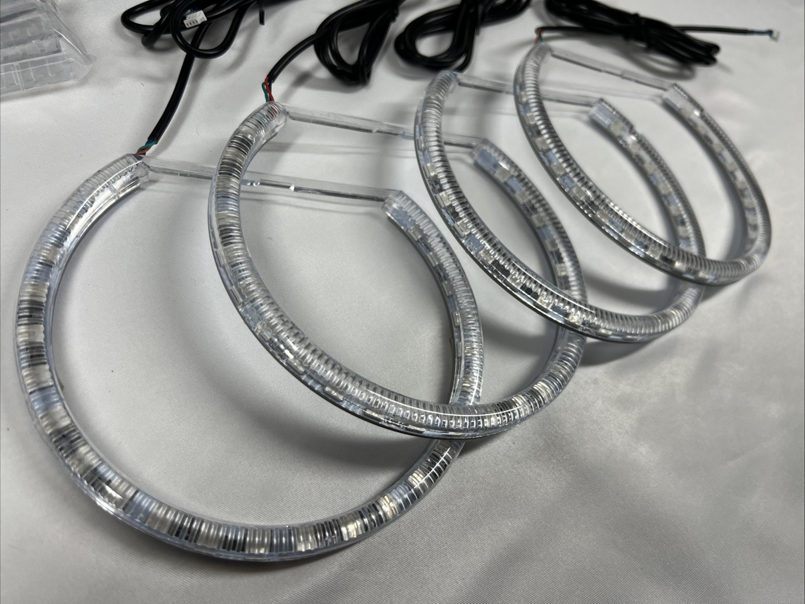 **Note: Please review all photos carefully to assess item's condition** Open box, tested fully working halo lights kit for various BMW models. The part itself has never been used in a car. Most of the factory self adhesive strips were old and fell off, so needs new adhesive such as 3M or silicone. Otherwise the unit is like new. **Installation:**Please note: for informational purposes only, please consult your mechanic for professional help. **Please check your local regulations on using LED vehicle lighting, using modes except white and amber on public roads is illegal and dangerous and should be reserved for use off public roads and highways such as car shows etc.** 1. Take off the plastic lens from the headlight (on E38 lens are clamped on and do not need heat and silicone, unsure about other models). 2. Secure the rings inside the headlight with adhesive (make sure adhesive is heat resistant). 3. Connect the rings to the included power supply module, and secure the power supply somewhere in the engine bay (find a spot away from the elements). 4. Connect the power supply to the battery, dedicated fuse is recommended. 5. Professional install recommended. **Fitment information:** Please note: It should fit these models according to Amazon, but please check the size and fitment for your vehicle before purchase, technically could fit other makes and models if will fit. - BMW 1992-1998 E36 3 Series Euro front lamp ONLY - BMW 2000-2003 E46 Pre-LCI 3 Series 323ci 325ci 328ci 330ci Coupe - BMW 1999-2004 E46 3 Series 323i 325i 328i 330i Sedan/Wagon w/ OEM xenon trims - BMW 2001-2006 E46 M3 - etc. _If you have any questions, please feel free to reach out!_