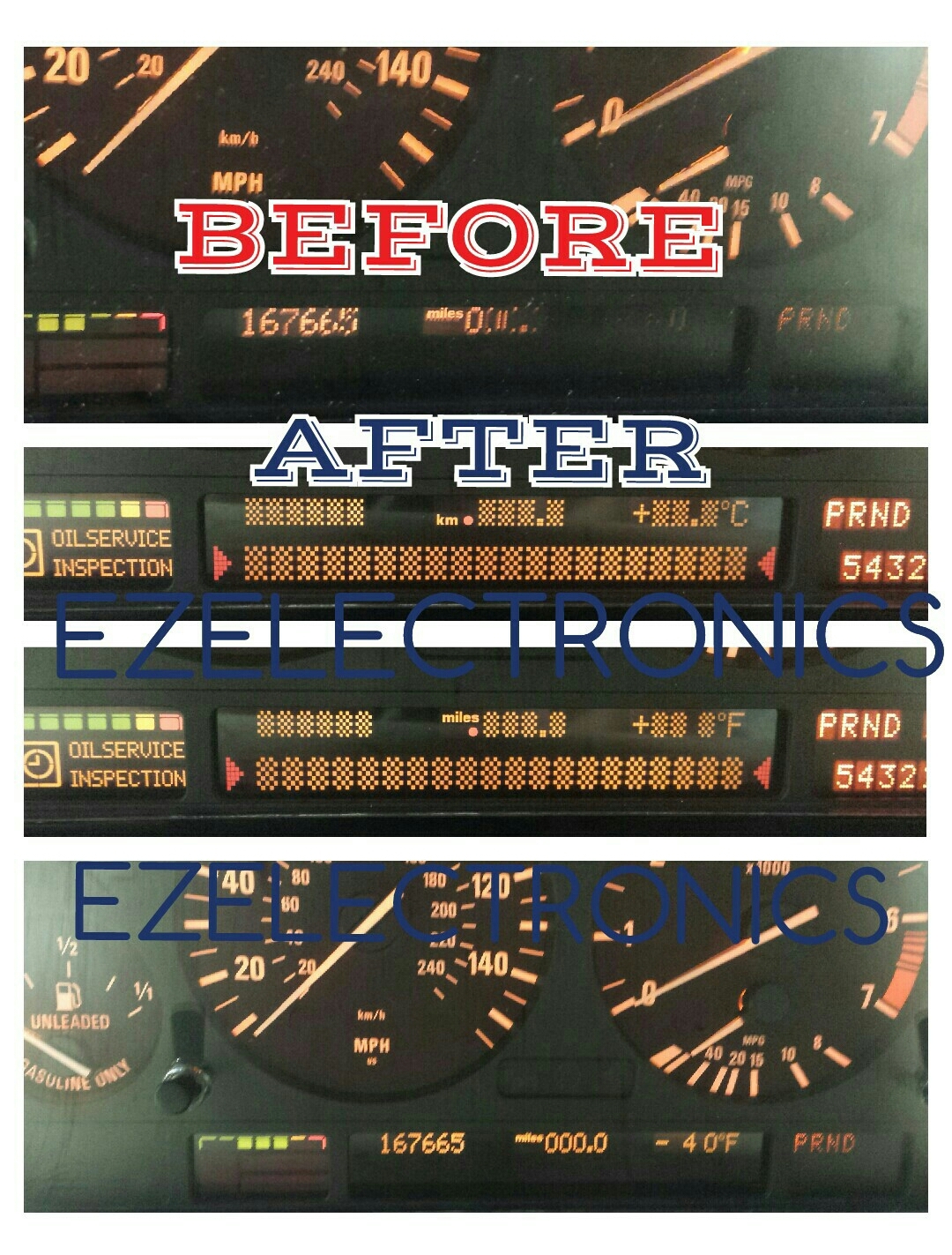**YOU ARE BUYING A REPAIR SERVICE FOR YOUR INSTRUMENT CLUSTER, YOU** **HAVE TO SEND YOUR CLUSTER TO BE REPAIRED, YOU'RE NOT BUYING** **THE CLUSTER THAT IS SHOWN IN THE PICTURE.** **VEHICLES** **COVERED UNDER THIS REPAIR:** **1996 TO 2003** **BMW 5 SERIES (E39) 528I,** **525I, 530I, 540I AND M5** ****1996 TO 2001**** ****BMW 7 SERIES (E38) 740I, 750I, 760I**** ****1999 TO 2006**** ****BMW X5 SERIES (E53)**** ****2003 TO 2005**** ****RANGE ROVER**** **PROBLEMS** **COVERED UNDER THIS REPAIR SERVICE:** **(LCD REPLACEMENT) IF YOU ARE EXPERIENCING THE** **PIXEL LOSS & DISPLAY FAILURE PROBLEMS WITH YOUR BMW OR RANGE ROVER** **SPEEDOMETER CLUSTER, IT IS TIME TO FIX IT ONCE AND FOR ALL!! THIS LISTING IS** **FOR THE PURCHASE OF A SERVICE TO REPAIR YOUR INSTRUMENT CLUSTER LOWER DISPLAY** **READOUT. TRUST THE BEST!! WE HAVE OVER YEARS OF EXPERIENCE WORKING WITH THESE** **HIGHLY-PROBLEMATIC DISPLAYS.** **YOUR INSTRUMENT CLUSTER IS PROGRAMMED TO YOUR** **VEHICLE WHICH IS WHY WE ADVISE HAVING YOUR ORIGINAL EQUIPMENT REPAIRED BACK TO** **NEW AT A FRACTION OF THE COST OF A DEALER REPLACEMENT. 24HR to 48hr Turnaround in most cases.** **WHAT YOU HAVE TO DO AFTER YOU CLICK BUY IT NOW…** **Instructions on shipping your instrument cluster:** ·**Wrap the cluster in bubble wrap inside a brand new cardboard box.** ·**Allow several inches of padded space, especially at each end, between the cluster and inner walls of the box.** ·**Clusters not packaged carefully can, and will, break while in transit.** ·**Pack as you would fine china or glass.** ·**Do not use shredded paper or packing peanuts as it may end up inside the cluster.** ·**INCLUDE YOUR PAYPAL INVOICE, OR HAND WRITTEN SHEET OF PAPER WITH YOUR RETURN SHIPPING ADDRESS, EMAIL AND PHONE NUMBER.** ·**Skip this step if there is a price for shipping; otherwise send a return shipping label with your unit.** **Shipping added to listing it’s to ship it back to you; buyer is responsible of sending their units to us.** **-SHIPPING: within the 50 U.S. states (UPS ground, or USPS).** **-INSURANCE: The first $100 is free if you want more than that let me know.** **MPORTANT: You are buying a repair SERVICE for YOUR item. YOU have to send us YOUR unit; we repair it and return it back to you.** **THIS LISTING IS TO REPAIR A UNIT THAT FAILED AND HAS NOT BEEN WORKED ON, IF SOMEONE ATTEMPTED TO DO THE REPAIR AND IT WAS UNSUCCESSFUL THEN THAT UNIT MIGHT REQUIRE EXTRA PARTS AND LABOR WHICH ARE NOT COVERED UNDER THIS LISTING, IF THAT IS THE CASE PLEASE CONTACT US FIRST FOR A MORE ACCURATE ESTIMATE** ·**By sending your speedometer in, it will not change mileage; it will stay the same as you have now…** **EZELECTRONICS** **4291 SW 106th PL** **OCALA, FL** **34476** **(Available Monday to Friday 10am to 6pm)**
