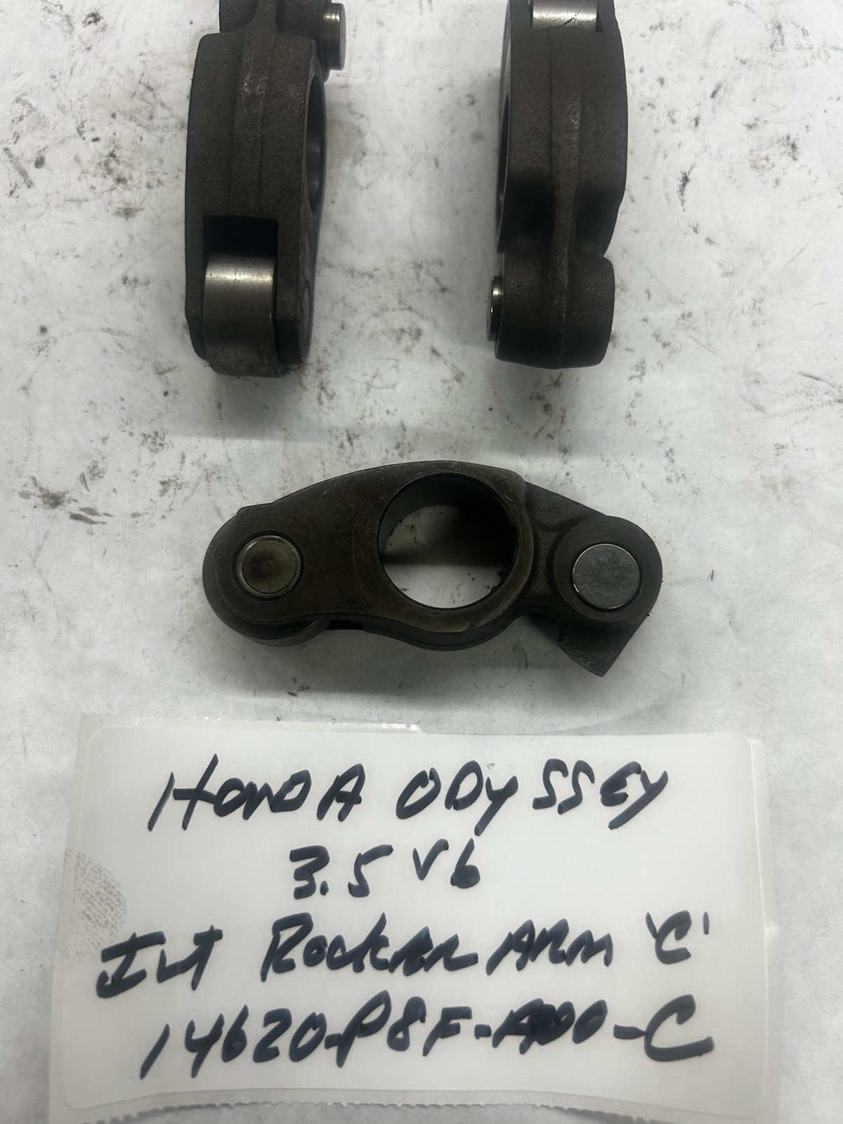 INTAKE ROCKER ARM "C" \*USED\* HONDA ODYESSY 3471cc SOHC 24V J35A 1999-2007 14620-P8F-A00-C \*USED\*\* ALSO FITS HONDA ACCORD 2997cc SOHC 24V J30A 2003-2007 \*\*NOTE, THIS IS THE CENTER ROCKER, SEE PIC'S HONDA HAS THREE INTAKE ROCKER ARMS, NOT SOLD SEPARATELY. I CALL THEM "A" "B" AND "C"s SEE PIC'S \*\*\*-ALSO HAVE A EXHAUST ROCKER "A" 14626-P8F-A00\*\*\* EXHAUST ROCKER ARM "B" 14627-P8F-A00 USED "OE" HONDA \*\*USED\*\* \*\*\*ALSO HAVE INTAKE ROCKER SHAFT 14631-P8F-A00\*\*\* EXHAUST ROCKER SHAFT 14632-RCA-A00 \*\*\*\*THIS IS A \*\*USED UNIT\*\*\* LOOK AT PIC'S AS THIS IS THE PART YOU WILL RECEIVE\*\*\* NO RETURNS ON USED PARTS\*\*\* EVERY PART NUMBER I HAVE LISTED ON MY SITE IS ON MY SHELF, NO DROP SHIPS FROM VENDORS PLEASE CHECK CATALOG FOR CORRECT FITMENT. QUESTIONS? CALL ME