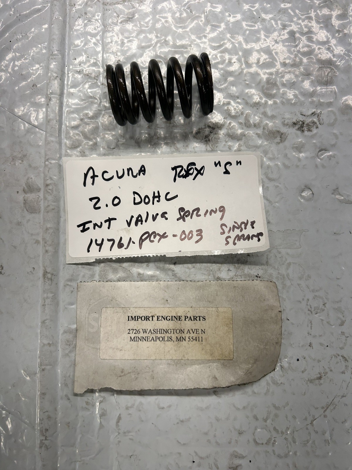INTAKE VALVE SPRING \*USED\* ACURA RSX "S"1998cc DOHC 16V K20 2002-2004 14761-PCX-003 \*\*USED\*\* SINGLE SPRING "OE" ACURA \*\*USED\*\* ALSO HAVE EXHAUST SPRING (DUAL) 14762-PCX-003 RETAINER 14765-PRB-A01 L/SPRING SEAT 14775-PRB-A00 \*\*\*\*THIS IS A \*\*USED UNIT\*\*\* LOOK AT PIC'S AS THIS IS THE PART YOU WILL RECEIVE\*\*\* NO RETURNS ON USED PARTS\*\*\* EVERY PART NUMBER I HAVE LISTED ON MY SITE IS ON MY SHELF, NO DROP SHIPS FROM VENDORS PLEASE CHECK CATALOG FOR CORRECT FITMENT. QUESTIONS? CALL ME