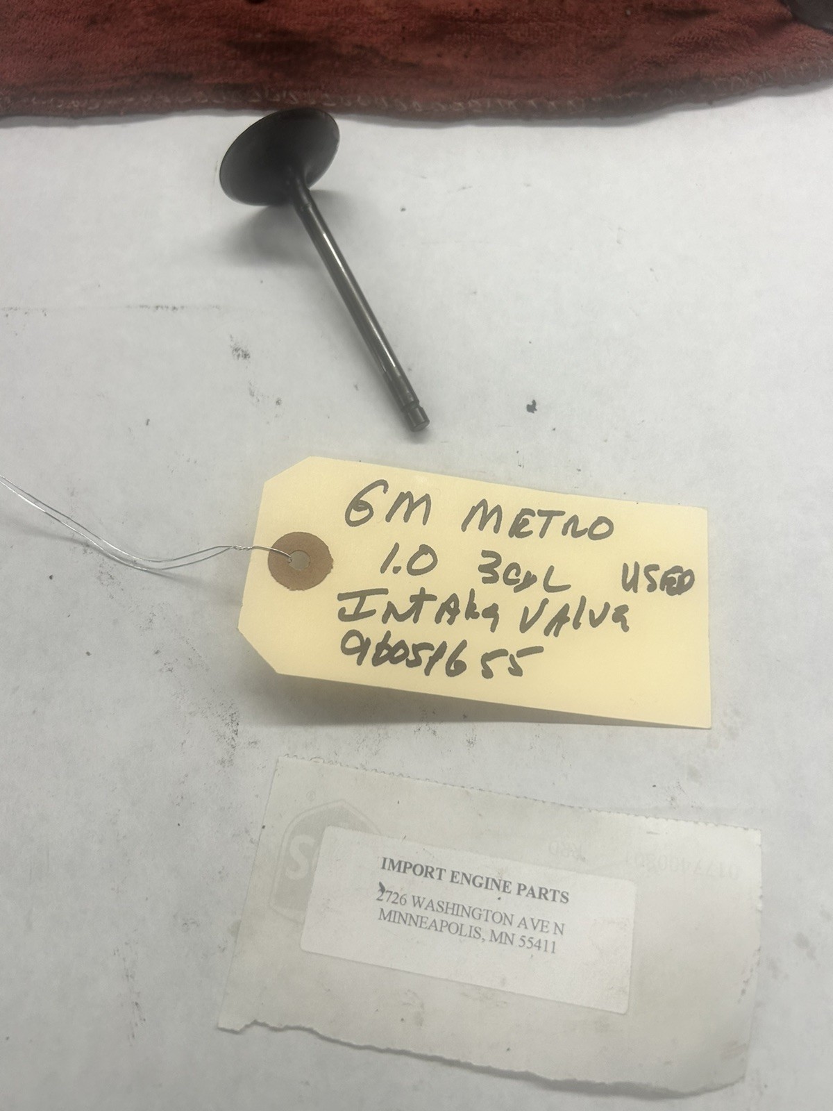 INTAKE VALVE \*\*USED\*\* FITS GEO METRO 993cc SOHC 3 CYL 1989-2000 96051655 \*USED\* SOLD AS EACH ALSO FITS METRO SPRINT 1.0 1989-2001 ALSO FITS METRO 1298cc SOHC 1998-2001 \*\*\*SOLD AS "EACH"\*\*\* ALSO HAVE EXHAUST VALVES USED 96051656 ALL USED VALVES ARE INSPECTED, NOT BENT/NOT BURNT \*\*\*ALSO HAVE VALVE SPRING 96068990 KEEPERS 96068277 VALVE SPRING RETAINER 91177395 THESE ARE USED PARTS IN GOOD SHAPE FROM "OE" HEADS NOTICE THAT PIC'S MAY SHOW MORE THAN ONE PART, PARTS ARE SOLD AS "EACH" IF QUANITY IS NEEDED, CALL ME FIRST EVERY PART LISTED ON MY SITE ARE ON MY SHELF TO SHIP, NO DROP SHIPS FROM VENDORS IF YOU HAVE ANY QUESTIONS ON THIS PART, CALL ME TO BE CERTAIN OF FITMENT..THANK YOU \*\*\*USED PARTS ARE NOT RETURNABLE\*\*\*