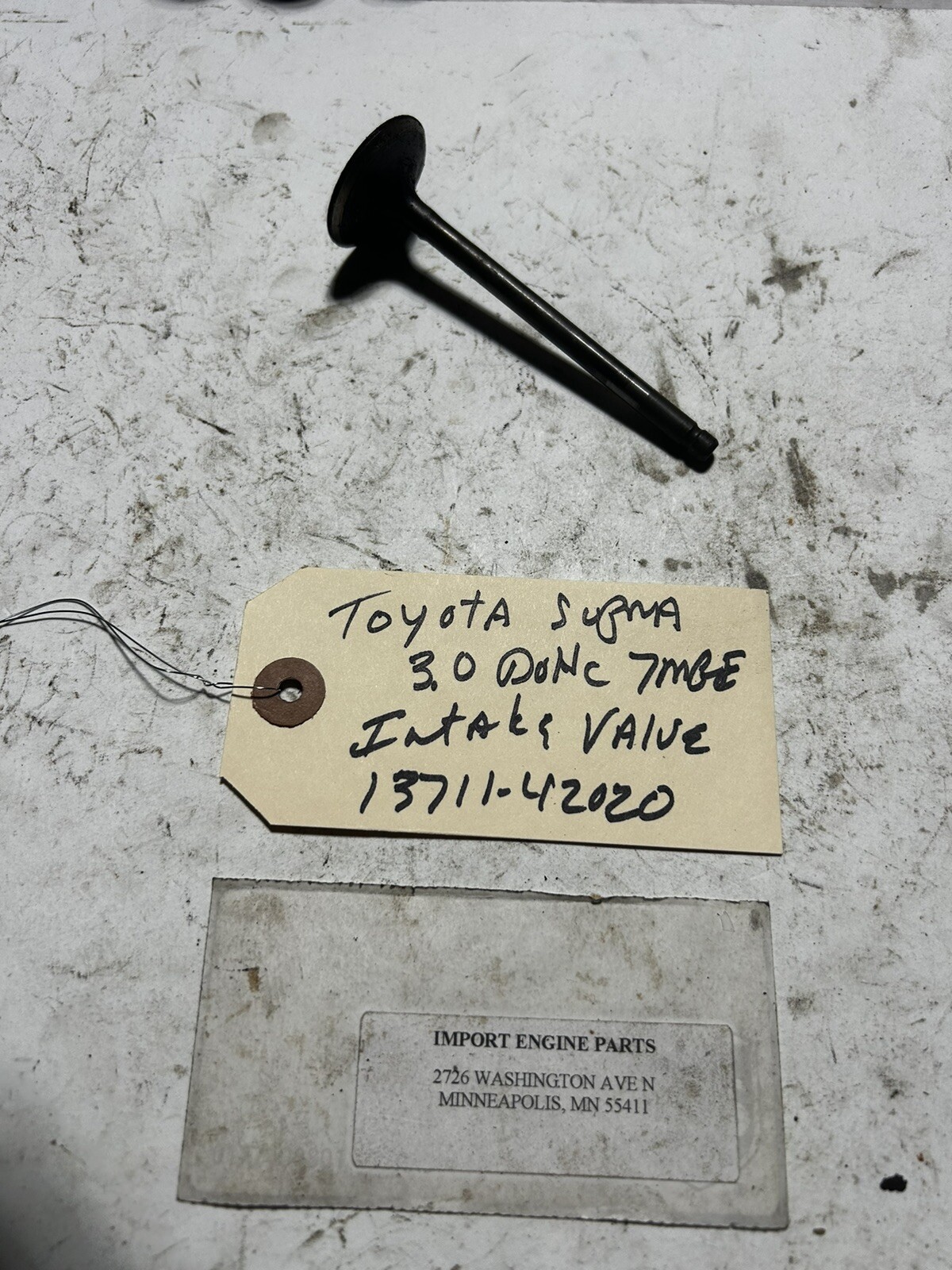 INTAKE VALVE \*USED\* FITS TOYOTA SUPRA 2954cc 7MGE DOHC 24V 1986-1992 13711-42020 \*USED\* SOLD AS EACH VALVES HAVE BEEN INSPECTED, NOT BENT/NOT BENT AS IS ALSO FITS TOYOTA CRESSIDA 2954cc 7MGE DOHC 24V 1986-1992 ALSO HAVE EXHAUST VALVE 13715-42010 ALSO HAVE VALVE SPRINGS 90501-33011 VALVE SPRING RETAINER 13741-46020 KEEPERS 90913-03021 ASK ABOUT QUANTITY DISC... THESE ARE USED INTAKE VALVE, BE SURE OF YOUR NEED AS USED PARTS ARE NOT RETURNABLE EVERY PART I HAVE LISTED ON MY E-BAY SITE IS ON MY SHELF, NO DROP SHIPS FROM VENDORS. NOTE THAT I USE "ITM" FOR MY CATALOGING, NOT ALL PARTS SHIPPED WILL BE ITM'S PLEASE CHECK CATALOG FOR CORRECT FITMENT, QUESTIONS? CALL ME