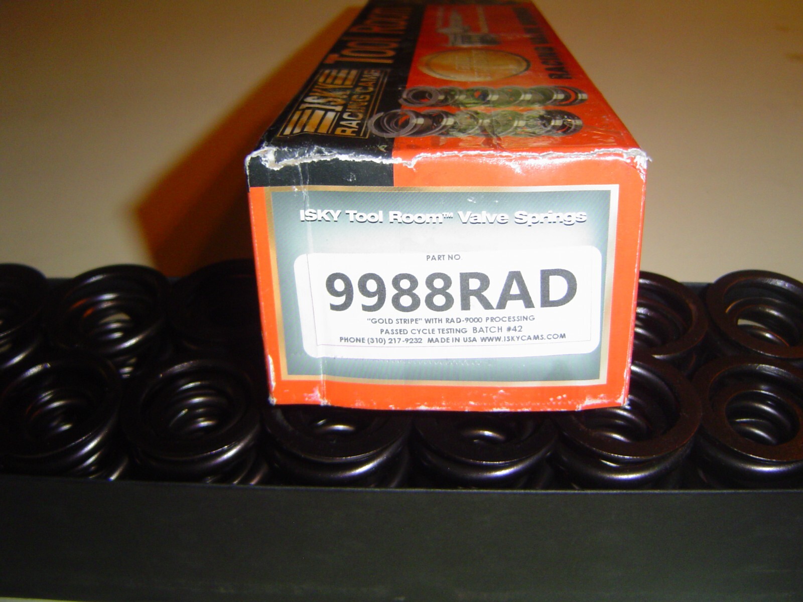 Guys - These springs are a terrific deal !! No one will be disappointed with these 1.570" springs !! I have sold many sets of these springs, never a return or a complaint, you cannot go wrong!!!! This item is a complete set of lightly used Isky Tool Room Race Springs for a solid roller cam. Part number is 9988RAD. These springs are virtually new and have seen no abuse during their short lifetime. They were installed in an engine with less than .700" lift, they install at 2.000" and they bind at 1.150". They never got any closer to coil bind than .175", that's like a part time job for a race spring. (These springs were used in fire truck racers, very short drag track then hard on the brakes, very few runs per event and very few events per season. The springs are changed each season. Also relatively low lift cams and spring pressures. They come out of the engines looking as good as used springs can look. Check my feedback, I've sold dozens of sets with happy buyers every time !! This particular set of Isky springs is as perfect as any !! Any other questions, send me a number and I'll ring you up !! I have checked each spring on my Rimac tester and they are within 10 lbs. of brand new springs, measuring 250+ lbs. at 2.000", the correct installed height. Open pressure varies from 650 to 660 lbs at 1.250", within 10 lbs. of new. New springs will cost you $570 or more, depending on your source. These springs are a terrific deal. Please contact me with any and all questions and I can tell you privately how they were used. Thanks for looking!! Here are the details: ## Part Number: Isky 9988RAD ## Dual Valve Springs O.D./I.D. of Outer Dia.: 1.570"/1.145" O.D./I.D. of Inner Dia.: 1.040"/.745" Seat load: 250 @2.000'' Open load: 660lbs @1.250"(.750" lift) Can handle valve lifts to .750" Coil bind: 1.150'' Rate: 550 lbs/in With damper 16 per package