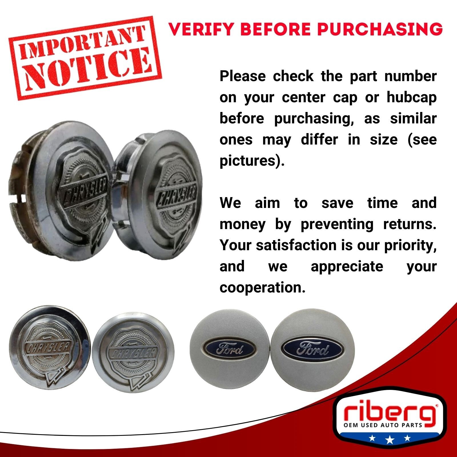 ## ITEM DESCRIPTION: # š„JAGUAR XJ6 XJS XJ8 XK8 OEM Wheel Center Cap Silver Green Chrome Edge (One)ā ## \\_\\_\\_\_\_\_\_\_\_\_\_\_\_\_\_\_\_\_\_\_\_\_\_\_\_\_\_\_\_\_\_\_\_\_\_\_\_\_\_\_\_\_\_\_\_\_\_\_\_\_\_\_\_\_\_\_\_\_\_\_\_\_\_\_\_\_\_\_\_\_\_\_\_\_\_\_\_\_\_\_\_\_\_\_\_\_\_\_\_\_\_\_\_\_\_\_\_\_\_\_\_\_\_\_\_ ## ITEM CONDITION: Good - Normal Use - Minimal signs of wear - As shown in the photos - Proper working condition 90 DAY WARRANTY \\* FREE SAME DAY SHIPPING \\* Cleaned, Packed and Ready to Ship Today! \\_\\_\\_\_\_\_\_\_\_\_\_\_\_\_\_\_\_\_\_\_\_\_\_\_\_\_\_\_\_\_\_\_\_\_\_\_\_\_\_\_\_\_\_\_\_\_\_\_\_\_\_\_\_\_\_\_\_\_\_\_\_\_\_\_\_\_\_\_\_\_\_\_\_\_\_\_\_\_\_\_\_\_\_\_\_\_\_\_\_\_\_\_\_\_\_\_\_\_\_\_\_\_\_\_\_ ## PLEASE NOTE: - PLEASE VERIFY THE COMPATIBILITY BEFORE BUYING OR REACH OUT AND WE WILL ASSIST - IT IS THE BUYER'S RESPONSIBILITY TO DETERMINE WHETHER THE PART WILL FIT HIS/HER CAR. - PLEASE MAKE SURE TO MATCH THE PART NUMBER WITH YOUR ORIGINAL PART. - WHAT YOU SEE IN THE PHOTOS IS WHAT YOU WILL RECEIVE. THE PHOTOGRAPHS ARE AN ACCURATE DEPICTION OF THE ITEM, WHAT YOU SEE IN THE PHOTOS IS WHAT YOU WILL RECEIVE. ITEM MAY SHOW LIGHT SCUFFS, SCRATCHES OR OTHER IMPERFECTIONS AS A RESULT OF THIS BEING A USED ITEM. IF YOU NEED ADDITIONAL PHOTOS, PLEASE FEEL FREE TO REACH OUT TO US. You will only receive what is pictured unless otherwise stated in the description. Please do not assume anything else will be included if it is not pictured. All of the parts we sell are guaranteed to be in good working condition unless otherwise noted. We ONLY guarantee the part(s) will fit the vehicle(s) listed in the description. If your vehicle was not originally equipped with the EXACT part(s) listed, it is your responsibility to consult a dealer to see if it will fit your application. Additional items may be needed if this is an upgrade or custom installation. Please consult your local dealer for ALL other applications. RIBERG PARTS reserves the right to cancel/refund any order that had parts described incorrectly, had incorrect pricing information or was out of stock/damaged. We do our best to prevent these issues from happening and apologize for any inconvenience it may cause. \\_\\_\\_\_\_\_\_\_\_\_\_\_\_\_\_\_\_\_\_\_\_\_\_\_\_\_\_\_\_\_\_\_\_\_\_\_\_\_\_\_\_\_\_\_\_\_\_\_\_\_\_\_\_\_\_\_\_\_\_\_\_\_\_\_\_\_\_\_\_\_\_\_\_\_\_\_\_\_\_\_\_\_\_\_\_\_\_\_\_\_\_\_\_\_\_\_\_\_\_\_\_\_\_\_\_ SHIPPING POLICIES: - Ground shipping rates apply to the continental United States. International shipping rates apply everywhere outside of the continental US. - When shipping internationally, parcels may be subject to Import Tax and Duty Charges, for which the buyer is responsible. - Any international customs fees must be paid by the buyer. - Puerto Rico, Virgin Islands, Hawaii and Alaska will require additional shipping charges. - Most items ship the same day if ordered by 12pm CST. Processing time for small and medium items is 1 business day, 2 business days for oversized items or freight shipments (Hoods, Door shells, Engines, Transmissions etc.) - Large items can only be shipped to a business/commercial address via Freight Shipping. Ā Delivering large items to a residential address will require extra cost/additional payment for Residential Deliver / Liftgate Delivery. - Freight Shipping companies require the customer to unload the shipment. If you are not able to unload your shipment, the shipping company will charge for unloading on your behalf. - To pass our shipping savings on to you, we may alternate between FedEx, USPS depending on which is most affordable and/or faster. - You are welcome to pick up your item at our warehouse location - please contact us for the address. Items eligible for return are non-functional or items that differ substantially from the description. Ā Please, do not purchase parts just to check and diagnose your vehicleās problem. - We are not liable for any labor fees associated with the installation or removal of any parts we sell. \\_\\_\\_\_\_\_\_\_\_\_\_\_\_\_\_\_\_\_\_\_\_\_\_\_\_\_\_\_\_\_\_\_\_\_\_\_\_\_\_\_\_\_\_\_\_\_\_\_\_\_\_\_\_\_\_\_\_\_\_\_\_\_\_\_\_\_\_\_\_\_\_\_\_\_\_\_\_\_\_\_\_\_\_\_\_\_\_\_\_\_\_\_\_\_\_\_\_\_\_\_\_\_\_\_\_ ### WARRANTY: - We offer a 90 DAY WARRANTY on all of our parts. (Parts ONLY - NO Labor) - Note: Please be aware that most of the parts we sell have been removed from used vehicles. While we provide accurate descriptions, in many cases, we have limited ability to test the parts and cannot guarantee their proper operation. However, we do offer a return policy for the first 30 days after you receive the item. Please note that returned items must be in the same condition as when we shipped. Thank you for your understanding. - Before purchasing an item, the customer MUST verify that the item will fit his/her vehicle. - Items may show light scuffs, scratches or other imperfections as a result of this being a used part. - Professional installation is highly recommended (No Instruction Included). \\_\\_\\_\_\_\_\_\_\_\_\_\_\_\_\_\_\_\_\_\_\_\_\_\_\_\_\_\_\_\_\_\_\_\_\_\_\_\_\_\_\_\_\_\_\_\_\_\_\_\_\_\_\_\_\_\_\_\_\_\_\_\_\_\_\_\_\_\_\_\_\_\_\_\_\_\_\_\_\_\_\_\_\_\_\_\_\_\_\_\_\_\_\_\_\_\_\_\_\_\_\_\_\_\_\_ ### CONTACT US: - If you have a question about any part please contact us before purchasing. \\_\\_\\_\_\_\_\_\_\_\_\_\_\_\_\_\_\_\_\_\_\_\_\_\_\_\_\_\_\_\_\_\_\_\_\_\_\_\_\_\_\_\_\_\_\_\_\_\_\_\_\_\_\_\_\_\_\_\_\_\_\_\_\_\_\_\_\_\_\_\_\_\_\_\_\_\_\_\_\_\_\_\_\_\_\_\_\_\_\_\_\_\_\_\_\_\_\_\_\_\_\_\_\_\_\_ FEEDBACK: I can assure you will be happy with your purchase! Please remember if you are 100% satisfied with your purchase to please take 10 seconds of your time to submit a positive feedback. Thank you!