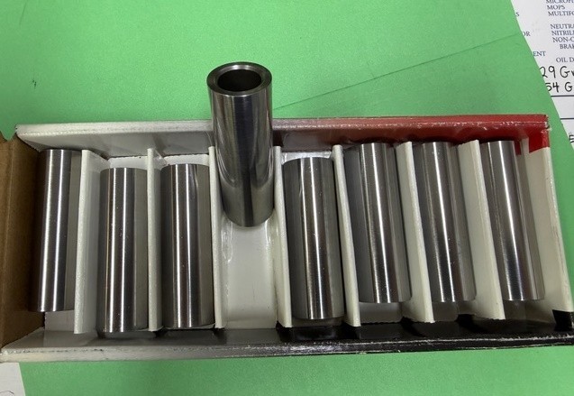 **FOR SALE** **GOOD USED JE WRIST PINS (SET OF 8).** **.927 DIAMETER, 2.750 LONG, .150 STRAIGHT WALL, DESIGNED FOR A SPIRO LOCK (NOT INCLUDED).** **130 GRAM WEIGHT.** **POLISHED & CHECKED FOR STRAIGHTNESS. READY TO USE.** **WE HAVE MANY WRIST PIN SETS LISTED ALONG WITH OTHER PERFORMANCE / RACING PARTS.** **FIXED SHIPPING OF: $8.00 TO US48.** **FREE LOCAL PICKUP AT: RHYNE COMPETITION ENGINES, GARY INDIANA** SOLD AS IS, NO RETURNS UNLESS MISREPRESENTED. PURCHASE WITH CONFIDENCE, 100% POSITIVE FEEDBACK, OVER 1000 POSITIVE E-BAY TRANSACTIONS. YOU ARE DEALING WITH A BUSINESS THAT'S BEEN AROUND FOR 50 YEARS PLUS. CONTACT US WITH ANY QUESTIONS. **CHECK OUT OUR OTHER PERFORMANCE ITEMS.** **WE WILL COMBINE SHIPPING.**