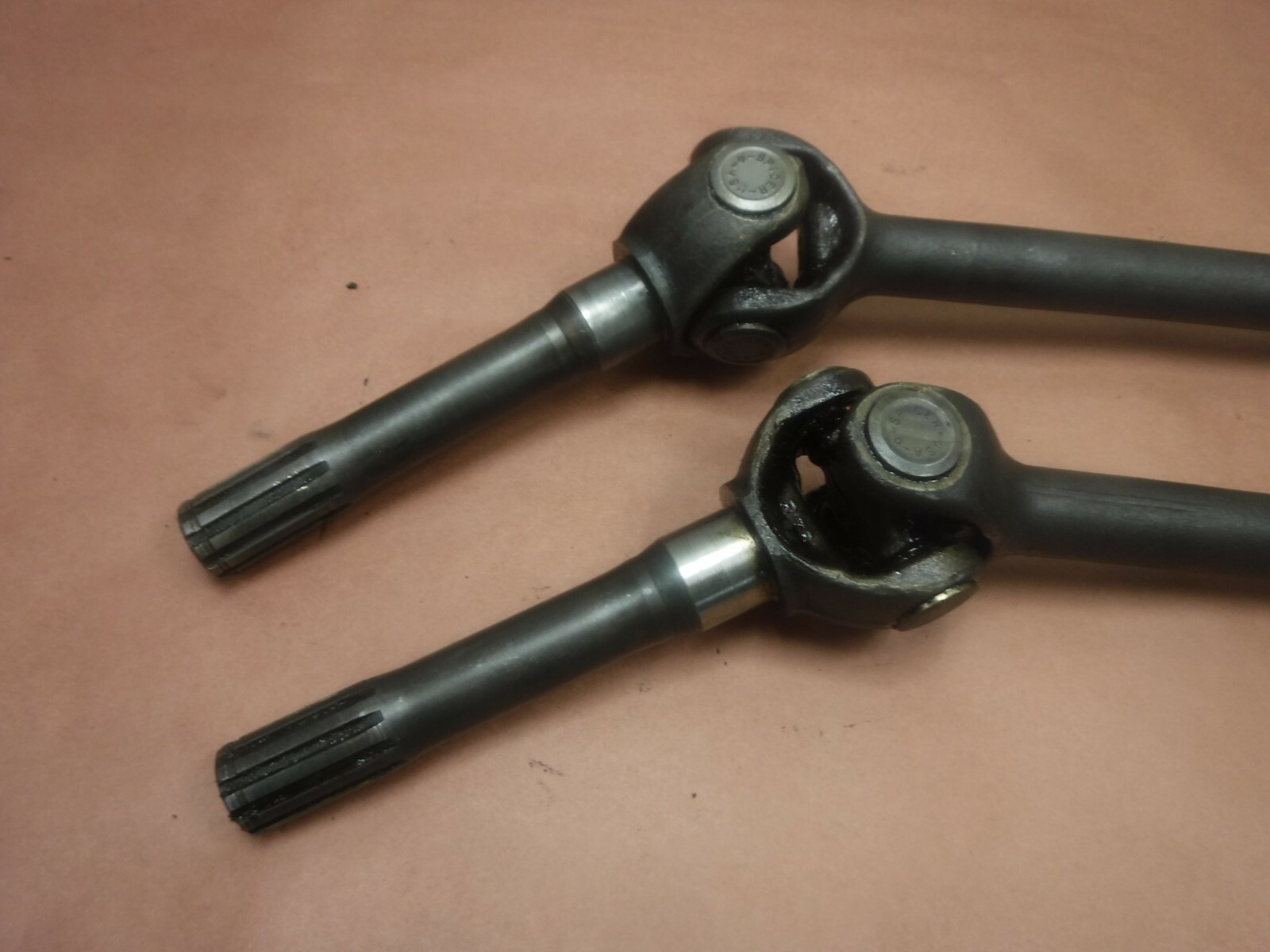 <div style="text-align: center;"><font size="5">Jeep FC170 Front closed knuckle Dana 44 axle shafts, these are in good shape, good joints, long side measures 35.5" from end of spline to center of Joint, outer is 8.5" short side is 19 3/8" inner 8.5" outer 10 spline outer shafts, 19 spline inner shafts, sold as shown</font></div><div style="font-size: 14pt;"><br></div><div style="font-size: 14pt;"><br></div><div style="font-size: 14pt;"><br></div><div style="font-size: 14pt;"><br></div><div style="font-size: 14pt;"><div id="ds_div"><font rwr="1" size="4"><div style="text-align: center;"><p class="MsoNormal"><span style="font-size: 20pt; line-height: 28.5333px;">If there is an issue with a part contact us immediately and we will take care of the issue, do not leave negative before we have had a chance to rectify the situation<o:p></o:p></span></p><p class="MsoNormal"><span style="font-size: 20pt; line-height: 28.5333px;"><br></span></p><p class="MsoNormal"><span style="font-size: 20pt; line-height: 28.5333px;">We harvest these parts from various Jeep models, we do not do any cleaning on them, we sell them as they come off the vehicle<o:p></o:p></span></p><p class="MsoNormal"><span style="font-size: 20pt; line-height: 28.5333px;"><br></span></p><p class="MsoNormal"><span style="font-size: 20pt; line-height: 28.5333px;">If you are in need of a certain part and don’t see it listed we have many parts that don’t make it to Ebay, feel free to inquire if we have it<o:p></o:p></span></p><p class="MsoListParagraph" style="margin-left: 1in;"><span style="font-size: 20pt; line-height: 28.5333px;"> </span></p><p class="MsoNormal"><span style="font-size: 20pt; line-height: 28.5333px;">Most of our sales offer free shipping, keep that in mind when making offers<o:p></o:p></span></p><p class="MsoListParagraph" style="margin-left: 1in;"><span style="font-size: 20pt; line-height: 28.5333px;"> </span></p><p class="MsoNormal"><span style="font-size: 20pt; line-height: 28.5333px;">Please ask any and all questions before the sale<o:p></o:p></span></p><p class="MsoListParagraph" style="margin-left: 1in;"><span style="font-size: 20pt; line-height: 28.5333px;"> </span></p><p class="MsoNormal"><span style="font-size: 20pt; line-height: 28.5333px;">Free shipping is ONLY for the Contiguous 48 states<o:p></o:p></span></p><p class="MsoListParagraph" style="margin-left: 1in;"><span style="font-size: 20pt; line-height: 28.5333px;"> </span></p><p class="MsoNormal"><span style="font-size: 20pt; line-height: 28.5333px;">Free shipping is NOT to Puerto Rico, Alaska, Hawaii, APO FPO DPO and all US territories including the US Virgin islands, we are more than happy to provide a shipping quote<o:p></o:p></span></p><p class="MsoListParagraph" style="margin-left: 1in;"><span style="font-size: 20pt; line-height: 28.5333px;"> </span></p><p class="MsoNormal"><span style="font-size: 20pt; line-height: 28.5333px;">For international shipments, we only use the Globalshipping program<o:p></o:p></span></p><p class="MsoNormal" style="margin-left: 0.75in;"><span style="font-size: 20pt; line-height: 28.5333px;"> </span></p><p class="MsoNormal"><span style="font-size: 20pt; line-height: 28.5333px;">Most items ship in 2 business days from processed payment, soon as tracking is available it will be uploaded, we do NOT work weekends or holidays, please keep that in mind<o:p></o:p></span></p><p class="MsoNormal" style="margin-left: 0.75in;"><span style="font-size: 20pt; line-height: 28.5333px;"> </span></p><p class="MsoNormal"><span style="font-size: 20pt; line-height: 28.5333px;">We ship USPS Priority, and UPS, it is up to the seller on which service is used, if you want a faster or express shipping, it is up to the Buyer to pay for any and all added costs<o:p></o:p></span></p><p class="MsoNormal" style="margin-left: 0.75in;"><span style="font-size: 20pt; line-height: 28.5333px;"> </span></p><p class="MsoNormal"><span style="font-size: 20pt; line-height: 28.5333px;">We allow returns up to 30 days after sale day, all parts are permanently marked and coded, so if a return is started it has to be our item that is returned<o:p></o:p></span></p><p class="MsoNormal"><span style="font-size: 20pt; line-height: 28.5333px;"> </span></p><p class="MsoNormal"><span style="font-size: 20pt; line-height: 28.5333px;">If an item is going freight, free shipping is to the terminal close to you, it is NOT to your door, extra charges apply for delivery to your door</span></p></div></font></div></div>