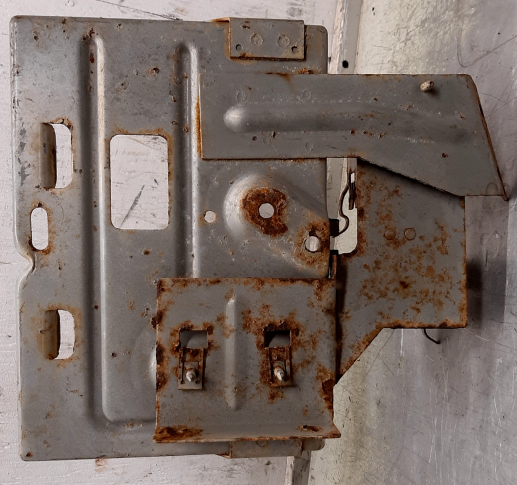 **Jeep Wrangler YJ 87-95 Battery Tray PARELLEL to Firewall. THESE HAVE SOME SURFACE RUST. tHEY WERE ORIGINALLY ON 1991-1995 YJ WRANGLERS BUT FIT ALL 1976-1990 CJ5, CJ7, CJ8, AND YJs.** **WE WILL SHIP EVERYWHERE BUT** **IF LISTING TITLE STATES FREE SHIPPING, IT IS ONLY FOR THE CONTINENTIAL 48 STATES \- AK, HI, AND PR WILL REQUIRE AN ADDITIONAL DISCOUNTED** **SHIPPING** **PAYMENT. PLEASEcontact us for cost at the time of sale.** **CHECK OUR 5000 SQ FT WAREHOUSE OUT IN PORTLAND, CT. GOOGLE US!** **WE DO NOT SHIP on Saturday, Sunday, or Holidays. TAKE THIS INTO ACCOUNT WHEN YOU THINK YOUR ITEM IS LATE. The buyer is responsible for all return shipping fees unless it is our mistake.** **PARTS MAY OR MAY NOT BE CLEANED, WE TRY TO CLEAN THEM AS WELL AS POSSIBLE FOR THE MOST PART.** **These are New England USED Jeep parts, so there may be rust and** **imperfections** **, scratches, etc.****.. PLEASE** **LOOK CLOSELY AT THE PICTURES!** **Crushtheogre's Used Jeep parts is a family run small business located in PORTLAND, CT. We specialize in 72-86 CJ parts, YJ, TJ and some XJ parts as well.****OCCASIONALY, we have 1955-****60s Willies parts.** **We would love to have your feedback and always rate our buyers highly in return.** **Please check out our website for more information or find us on FACEBOOK.**