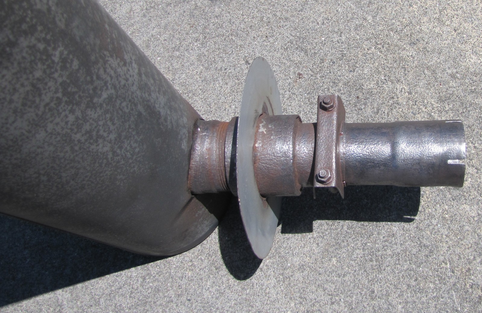 **Kohler Industrial Muffler Silencer off Ford 175hp Natural Gas Engine / Generator** This Kohler Industrial Muffler/Silencer OEM Exhaust Part, is a durable replacement designed for application on heavy equipment, including generators, engines, compressors, and other machinery. This vintage part from Kohler is a genuine OEM product, ensuring a perfect fit and reliable performance. With a focus on reducing noise and vibrations, this muffler/silencer is a crucial component for maintaining the functionality and longevity of your compatible equipment. This muffler is in good condition, it has been tested and although rusty, has proven to be fully functionable. It came off of a Kolhler 57kw standby generator with roughly 1050 hours and it was connected to a Ford 176 hp natural gas engine model LSG-8751-6005-A. The pipe going to the engine is 3" ID and the threaded pipe is 3-1/2" OD.