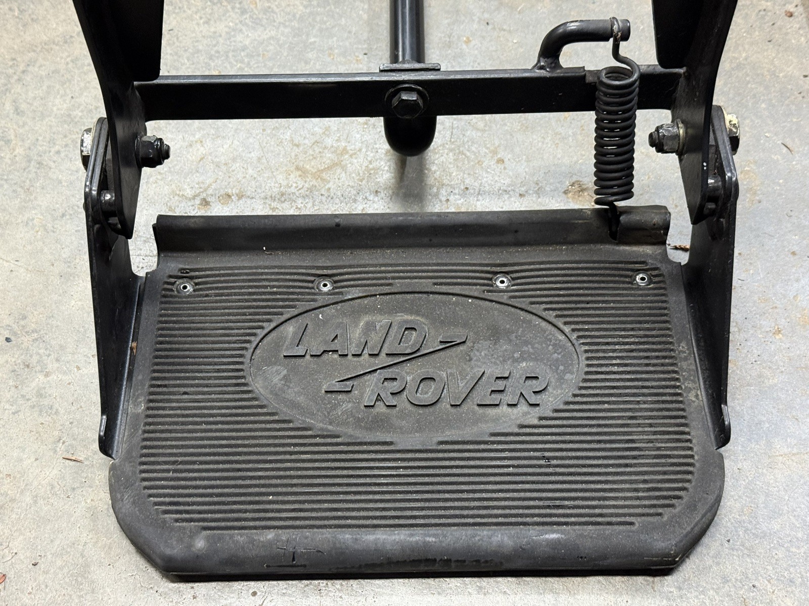 Genuine Land Rover. Not cheap pattern copy from overseas. Very good condition. Great rubber pad, positive spring. You’d be hard pressed to find a Defender that is too nice to fit this to. This listing is for one step, though I have two available. For shipping, the long support bar will be unbolted from the main frame, hardware and bar will be securely included in parcel. (Inventory: B)