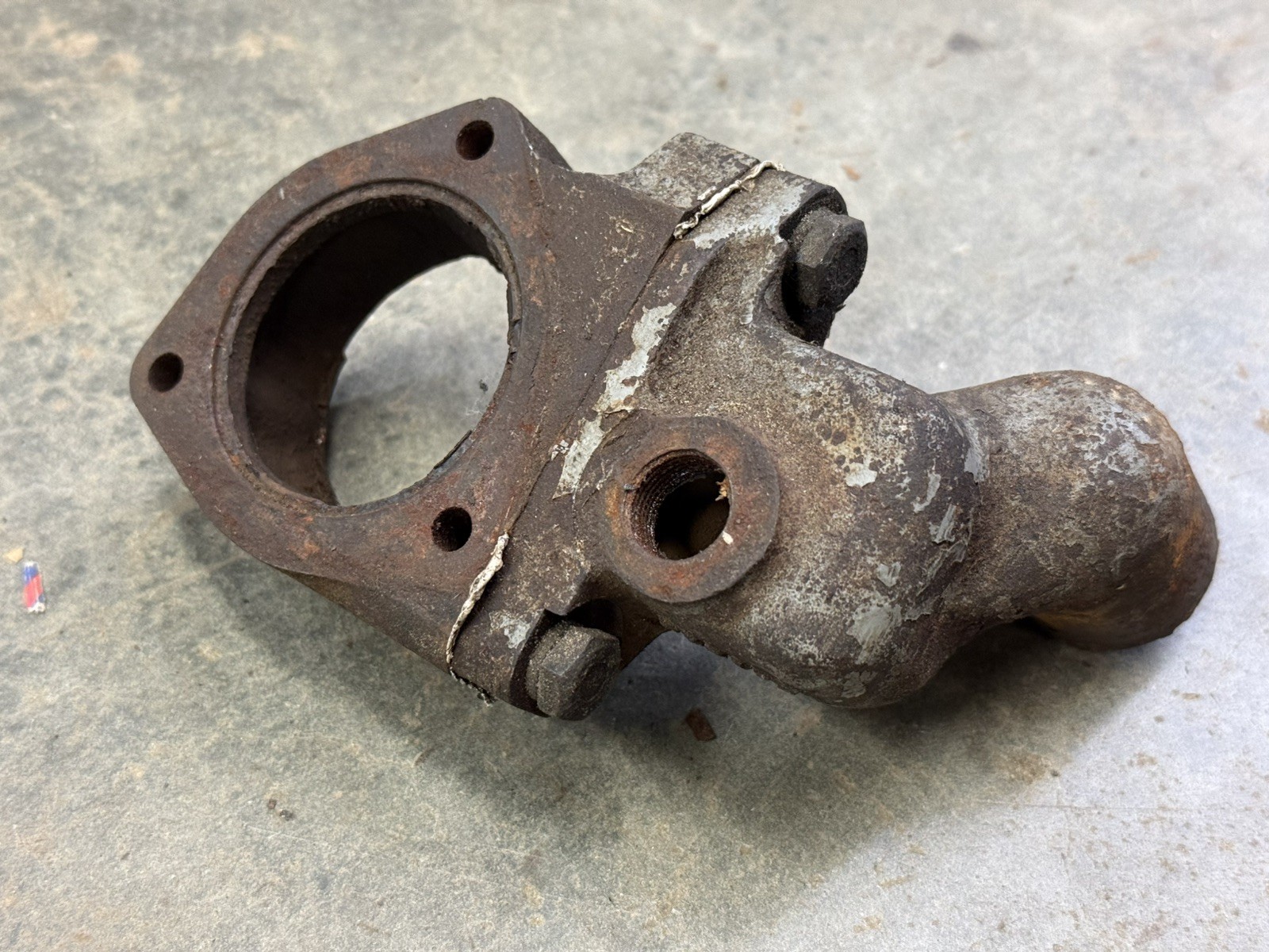Looks like a good used part. You’ll want to clean this up and replace the gasket between the two parts. If you’re overhauling your cooling system, prepping these parts ahead of time will decrease your downtime during the project