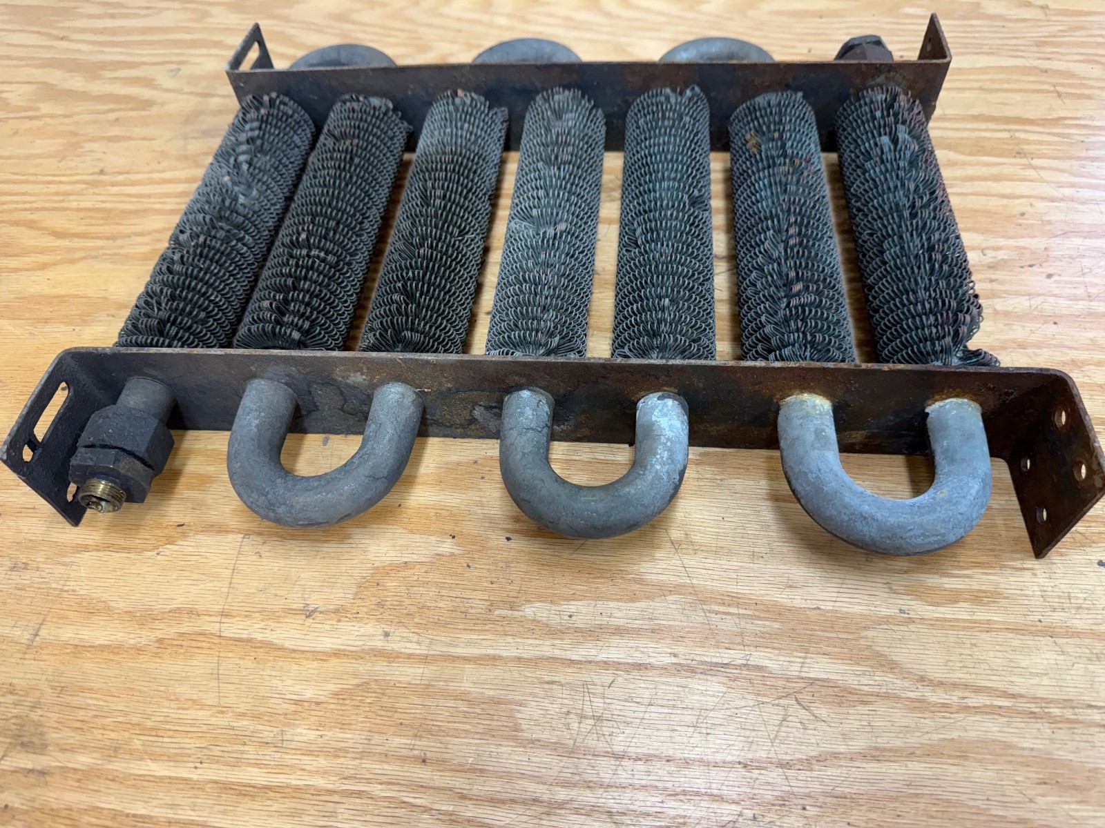 Land Rover Series IIA III oil cooler. It has not been tested for leaks, some fins are bent, overall appears to be in good condition.