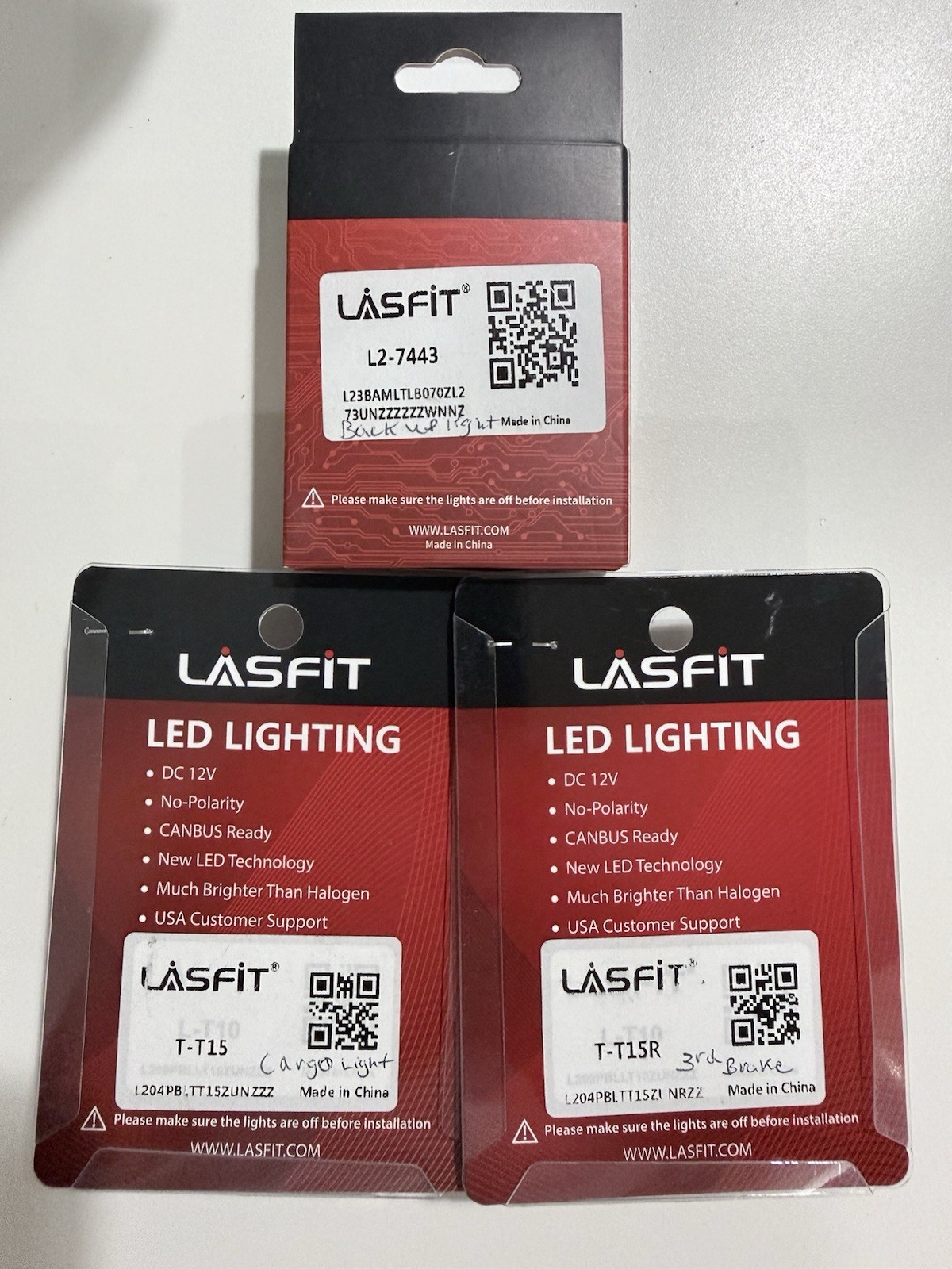 These were used for a little over a month. In good condition. Includes: Reverse Lights - 7443 Full 3rd brake light conversion - T15 + T15R