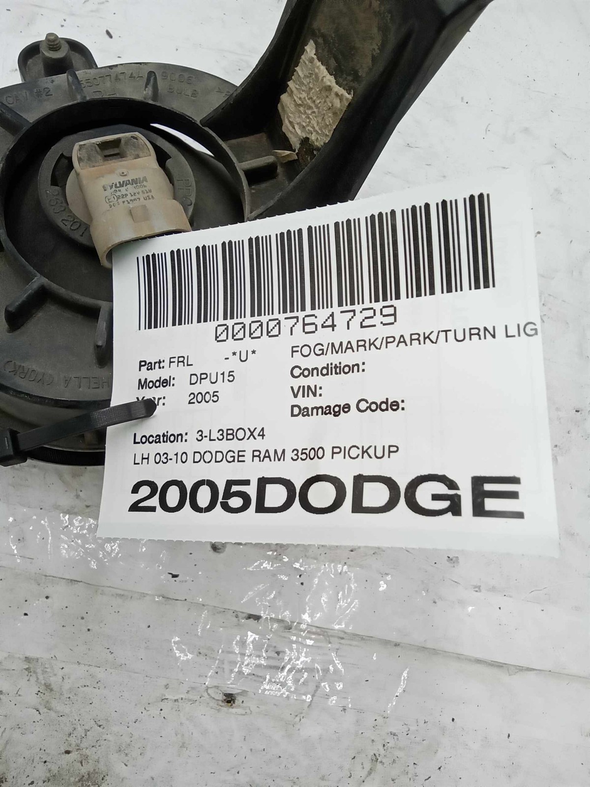 LH 03-10 DODGE RAM 3500 LEFT Driver SIDE Fog Driving Light USED OEM #55077475AC