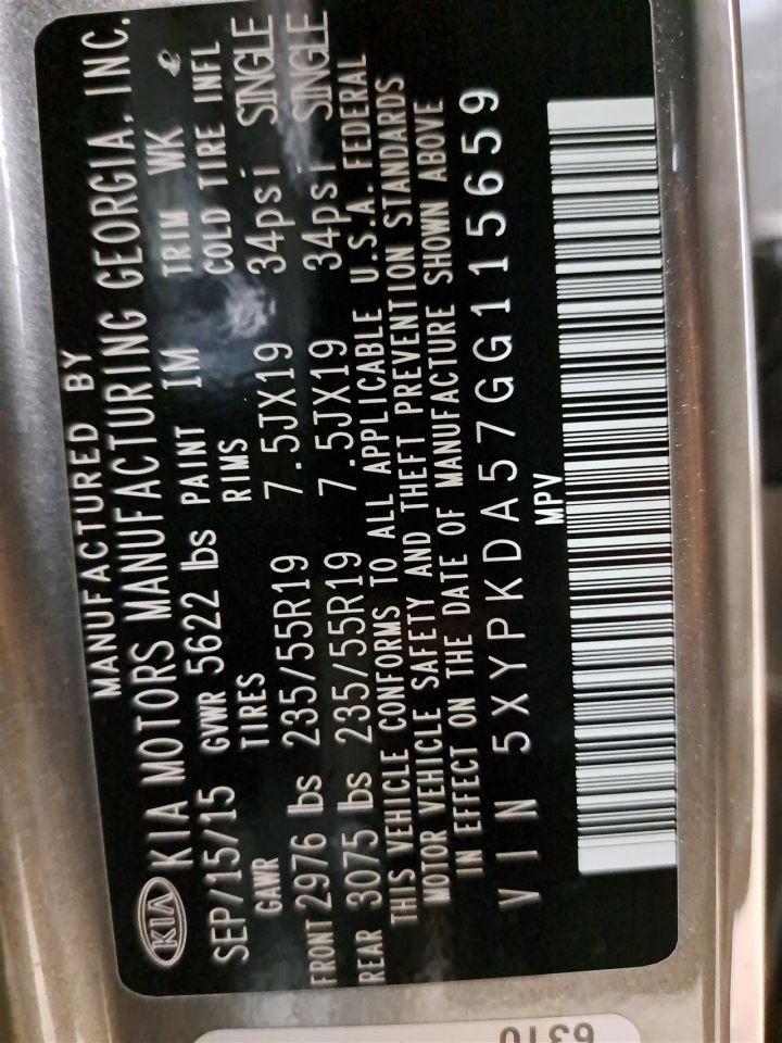 - VIN #: 5XYPKDA57GG115659