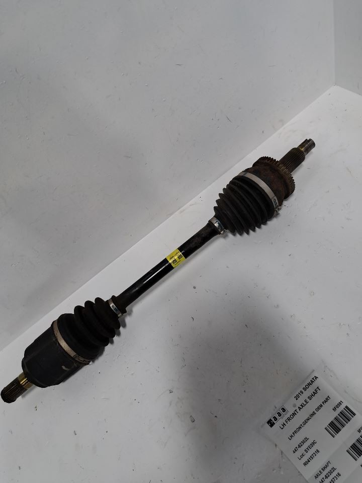 Item Description **6 MONTH WARRANTY!! 60 DAY NO HASSLE RETURNS!!** **This for a USED OEM Axle/Cv C/V Shaft Assembly pulled from a 2019 SONATA with 71000 actual miles on it.** **Here are our part notes about this specific part:** **LH,FRONT,GENUINE OEM PART** **Our Part #: 447-62302L, 4157316** **Our Stock#: 5F0591** Please see the fitment section below to make sure this will fit your vehicle. Pay special attention to any options listed!!! In some cases, it may only fit vehicle with certain options or specific ID#s as listed below. **SONATA 15 Front; 2.4L, VIN F (8th digit), L.** **SONATA 16 front, 2.4L, L.** **SONATA 17-19 (front), 2.4L, L.** Whats Included? Whats Included? FAQ/ Help Shipping Payment Returns/Warranty #### Whats Included? ``` Here is a short description of what will generally be included with your item. If you would like more information or are unsure if something will come with your item, PLEASE ASK!! A/C Compressor: Includes the clutch/pulley assembly A/C Condenser: Sensors and hoses are not included ABS Units: Include the ATTACHED electronic module unless otherwise noted Alternator: Includes the pulley. Any brackets are not included Axle/CV shaft: Does not include the axle nut Blower Motor: Include the squirrel cage/fan blade Caliper: Includes the bracket and slides. Slides are not covered under warranty Column Switch: Includes wiring (if applicable) up to the first point it can be unplugged Control Arm: Includes the ball joint and any bushings Coolant Overflow Bottle: Cap is included Cowl Vent Panel: See Our Part notes, often sold as one side only Differential Carrier: Does not include axles Door Trim Panel: Includes handle and armrest. Does not include window/lock switches Engine: Included for convenience unless otherwise noted. These parts are not covered under warranty: Intake manifold, fuel injectors, oil pan, sensors, water pump Not included: Throttle body, Turbo, wiring harness exhaust manifold (may be left on in certain cases) Exhaust Manifold: Does not include turbo where applicable Fan Assembly: Includes motors, shroud, and blades. Fuel injectors: See our part notes Fuel Filler Door: Includes hinge. Does not include bolts/hardware Fuel Pump: Includes sending unit and any molded hoses that are non-removable Headlight: Brackets are included unless otherwise noted. HID headlights include the bulbs and ballast Hub: Includes wheel studs Ignition Coil(s): See part notes Interior Rear View Mirror: Does not included bracket glued to windshield Jack: See part notes. If noted as assembly, it will include the lug wrench Mass Airflow Sensor: Does not include housing unless pictured Power Steering Pump: Includes pulley and ATTACHED reservoir. Remote reservoirs and brackets will not be included Power Steering Gear: Includes pitman arm Rack and Pinion: Includes tie rods but they are not covered under warranty Radio: Pay special attention to our fitment description. Often times radios are more than one piece and we sell them each separately Spindle/Knuckle: Does not include hub unless noted Starter: Includes solenoid Strut: Struts are left assembled and include top plate, spring, and dust boot (dust boots on used struts are rarely in perfect shape) Stabilizer Bar: Does not include links or bushings Sunvisor: Does not include clip Taillight: Pay special attention to fitment as we list the trunk lid mounted taillights as well as the corners. Does not include bulbs Temperature Control: Includes all knobs, buttons, and sliders Throttle Body: Includes sensors but they are not covered under our warranty Transmission: Automatic transmissions include torque converters and sensors. Many newer transmissions require a relearn/programming procedure. Manual transmissions do not include any part of the clutch system. Transfer Case: Does not include electric shift motor Washer Reservoir/Bottle: Includes cap unless noted Wheel/Rim: Does not include center cap, tire, or lug nuts Window Regulator: Does not include motor unless noted (most are noted with motor) Wiper Motor: Does not include arms or transmission unless noted Wiper Transmission: Does not include motor or arms unless noted ``` FAQ/ Help #### FAQ/ Help ``` Will this fit my vehicle? Is this the right part? This is the most common question that we get. The fitment information can be confusing if you don't buy replacement parts everyday. Please contact us if you are unsure!! We try to respond to questions as quickly as possible and we are more than happy to answer any questions as best as we can. In order to speed up the process, it is very helpful, but not required, for you to send us your full VIN number along with your question. It looks like its the same color as my car, how can I tell for sure? The best way is to match the manufacturer paint code. Most of the time we include the paint code in our part notes. If you don't know what a paint code is or where yours is located, please feel free to ask. We are happy to help. I only see photos of the vehicle and not the actual part you are selling. Can you send me some? Our most recent listings include actual photos when we can provide them. If you would like an actual photo, we are more than happy to take one after the purchase for your approval before the part ships. In certain cases we will take actual photos before a purchase is made. This is on a case by case basis. Send us a message and we will let you know if it is possible for us to do so I see a wheel that says it is "B" condition, what does that mean? Grading of parts is a very subjective process but we do our best to keep it uniform. Here is a brief description of wheel grades: A Condition, A-COND = This is the highest grade used wheel. It will have very minor imperfections but will be in better condition than 90% of vehicles on the road. B Condition, B-COND = This wheel will have some cosmetic imperfections. It is in average condition for the year and mileage of the donor vehicle. It may have minor scratches and clear coat 