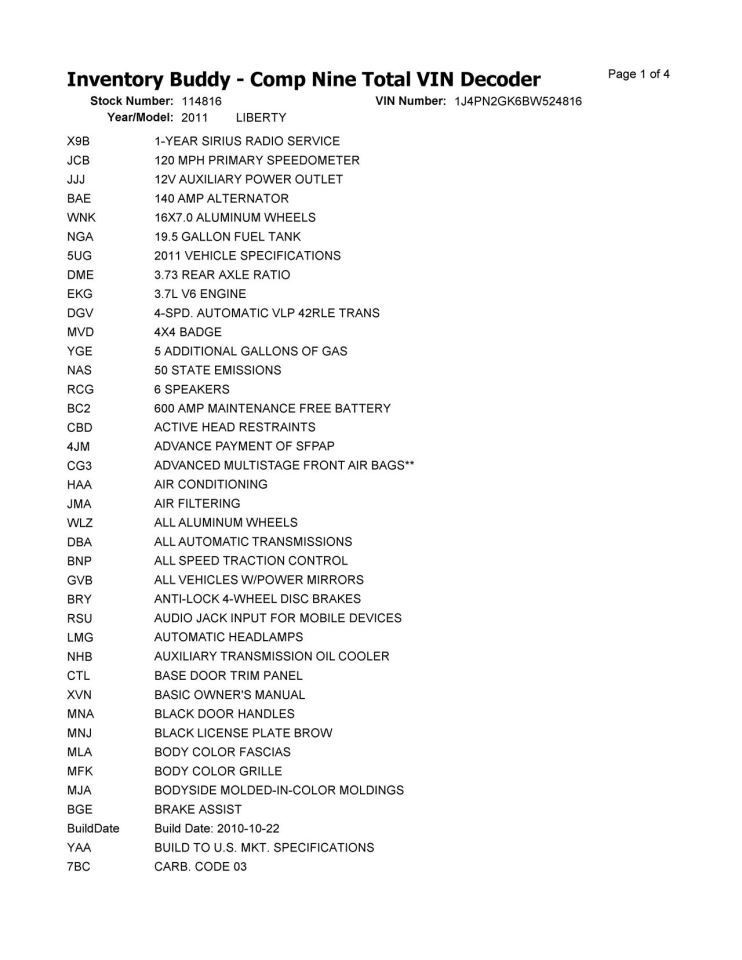 - VIN #: 1J4PN2GK6BW524816