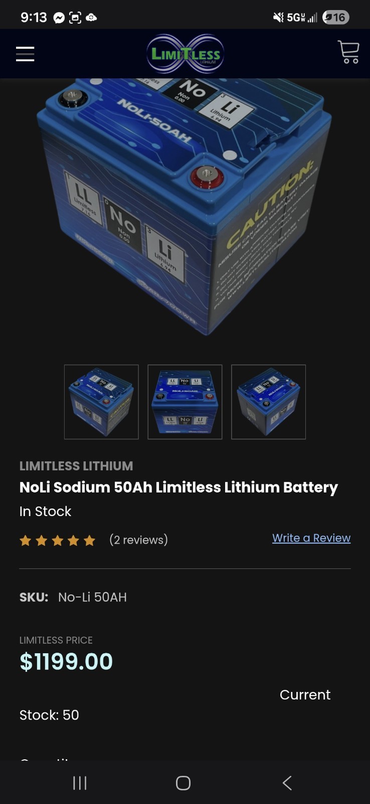 Limitless Lithium NoLi Sodium 50Ah Battery