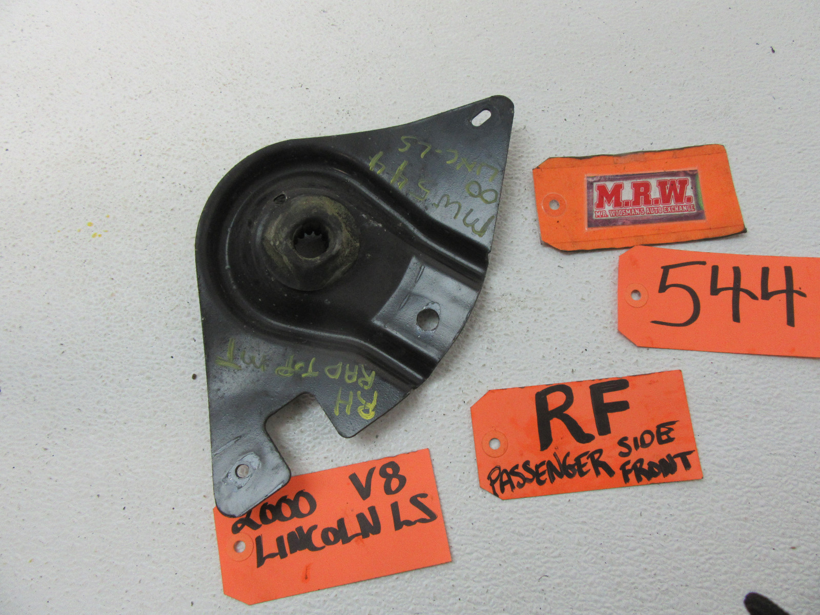 **YOU ARE LOOKING AT ONE USED R RH RF RIGHT (PASSENGER) TOP MOUNT / BRACKET, AS SHOWN IN THE PHOTOS.** **IT IS OUT OF A 2000 LINCOLN LS 4 DOOR SEDAN, WITH SPORT SUSPENSION, EBONY (COLOR CODE: UA) IN COLOR, WITH A 3.9L (V8) ENGINE & AUTO TRANSMISSION, PRODUCTION DATE: 1-00, INTERIOR TRIM CODE: 4W, MILES: 53,749** **IT IS USED BUT IN GOOD CONDITION. IF YOU HAVE ANY QUESTIONS PLEASE ASK PRIOR TO BUYING. ALL SALES ARE FINAL. WE SELL EVERYTHING AS-IS, NO RETURNS. LOOK FOR MORE GREAT ITEMS IN OUR STORE. THANKS & GOOD LUCK! MRW488 STOCK# MW544 HOLLANDER# BOOK 00-01** ******MAY FIT OTHER YEARS MAKES AND MODELS ?