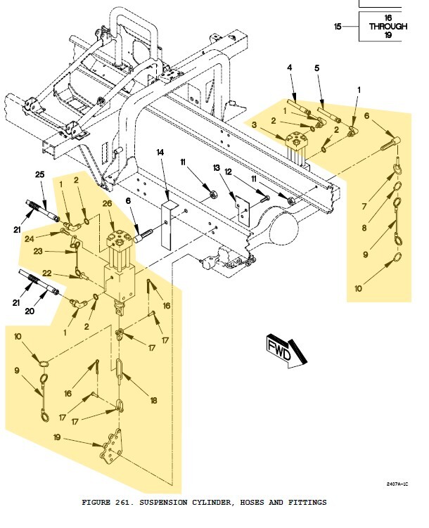 LMTV Suspension Compression Kit. Nearly everything in figure 261 of TM-9-2320-365-24P except for the hoses and passenger side part #6 since it's nearly impossible to access. All pars in full working order and no leaks observed. Locking pins slide in smoothly as well. Figure #Part #NameQty included1MS51527A4ZTube elbow, SAE ORB to JIC #4 w/ o-ring42MS28778-4O-ring4 (part of #1)3 & 2612420793Cylinder assembly2612417929Screw w/ cross-hole1712417930Quick Release Pin2819-4CDRetaining Ring2950996-8WLanyard21019-9CDRetaining Ring21112414308-021M12 Nut112B18231B16030NM16 Cap Screw, 30mm61312421158Spacer Plate21512421180Chain Assy216MS24665-385Cotter Pin2171018892Shackle41812421195Welded Chain21912421196Mounting Plate222MS17984C735Quick Release Pin42312420196-004Lanyard42412414419-089M8 Screw2