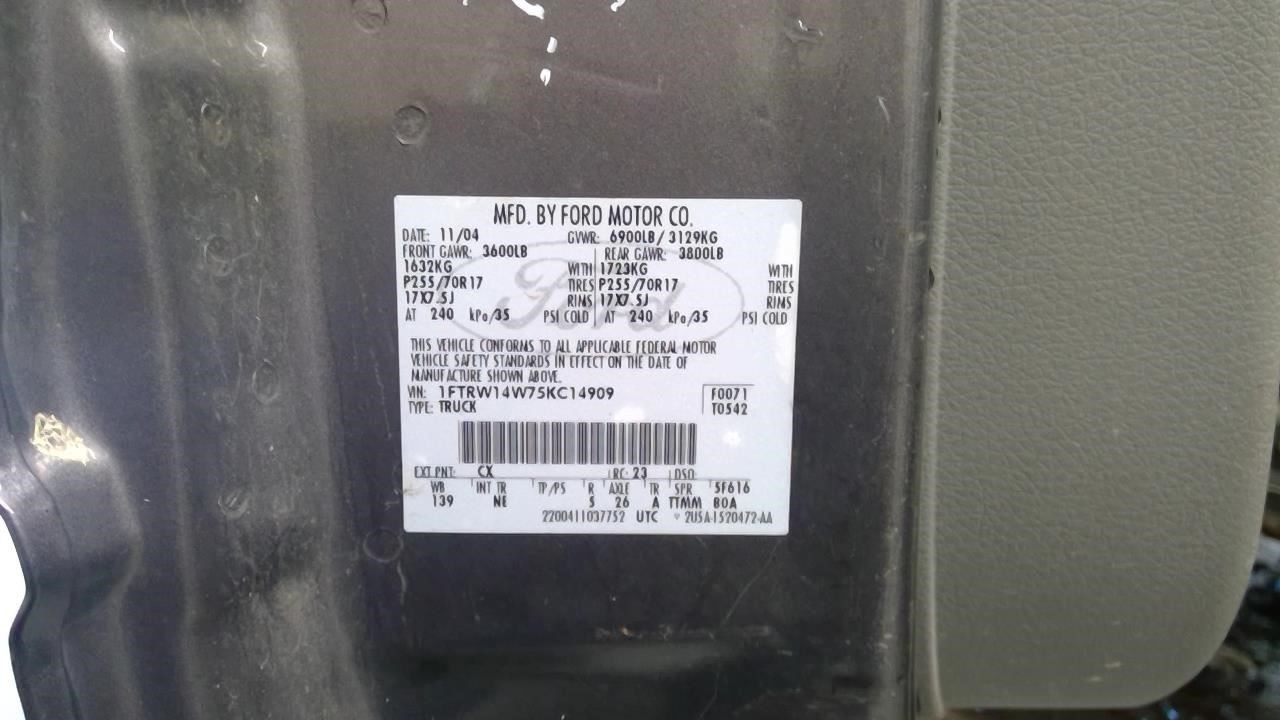 - VIN: 1FTRW14W75KC14909