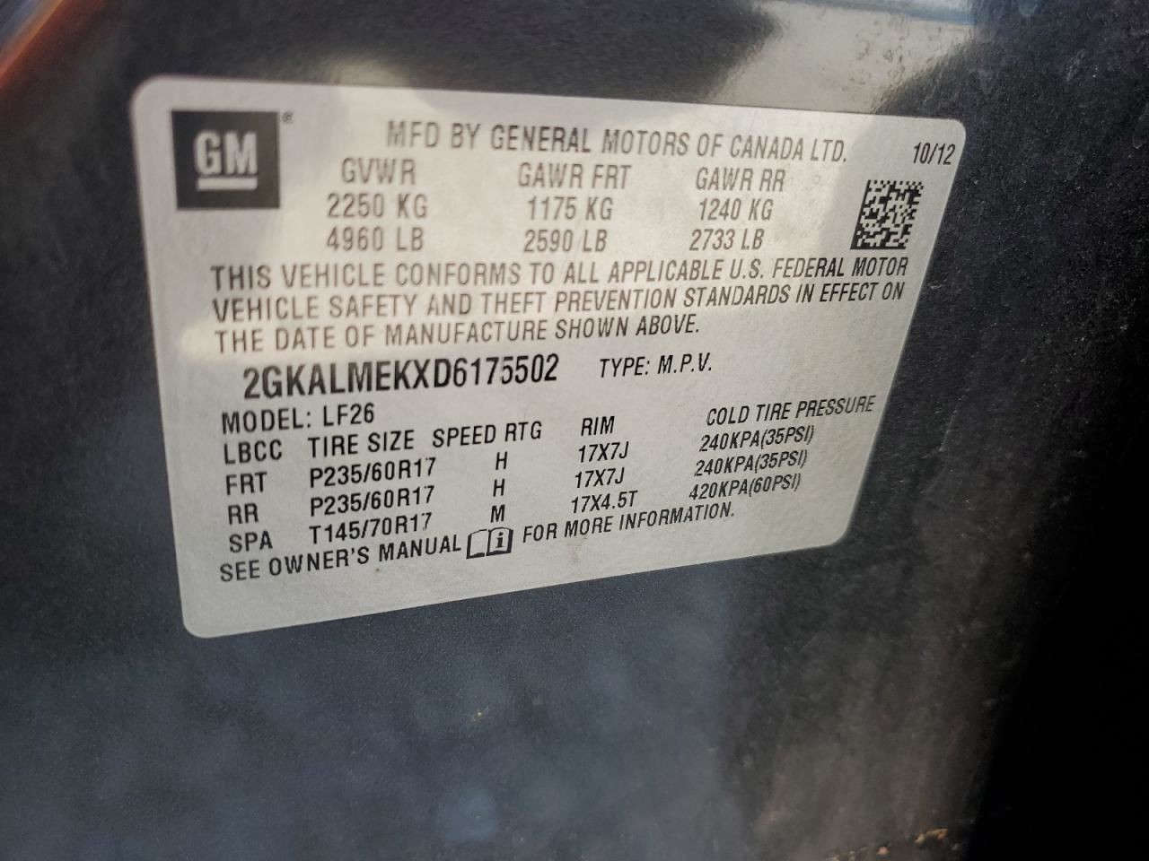 - VIN #: 2GKALMEKXD6175502