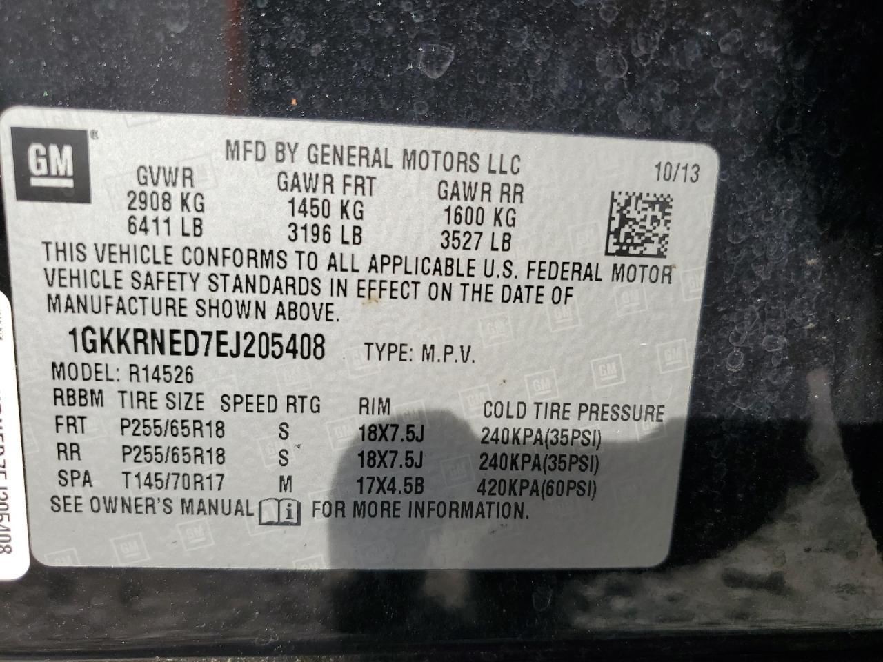 - VIN #: 1GKKRNED7EJ205408