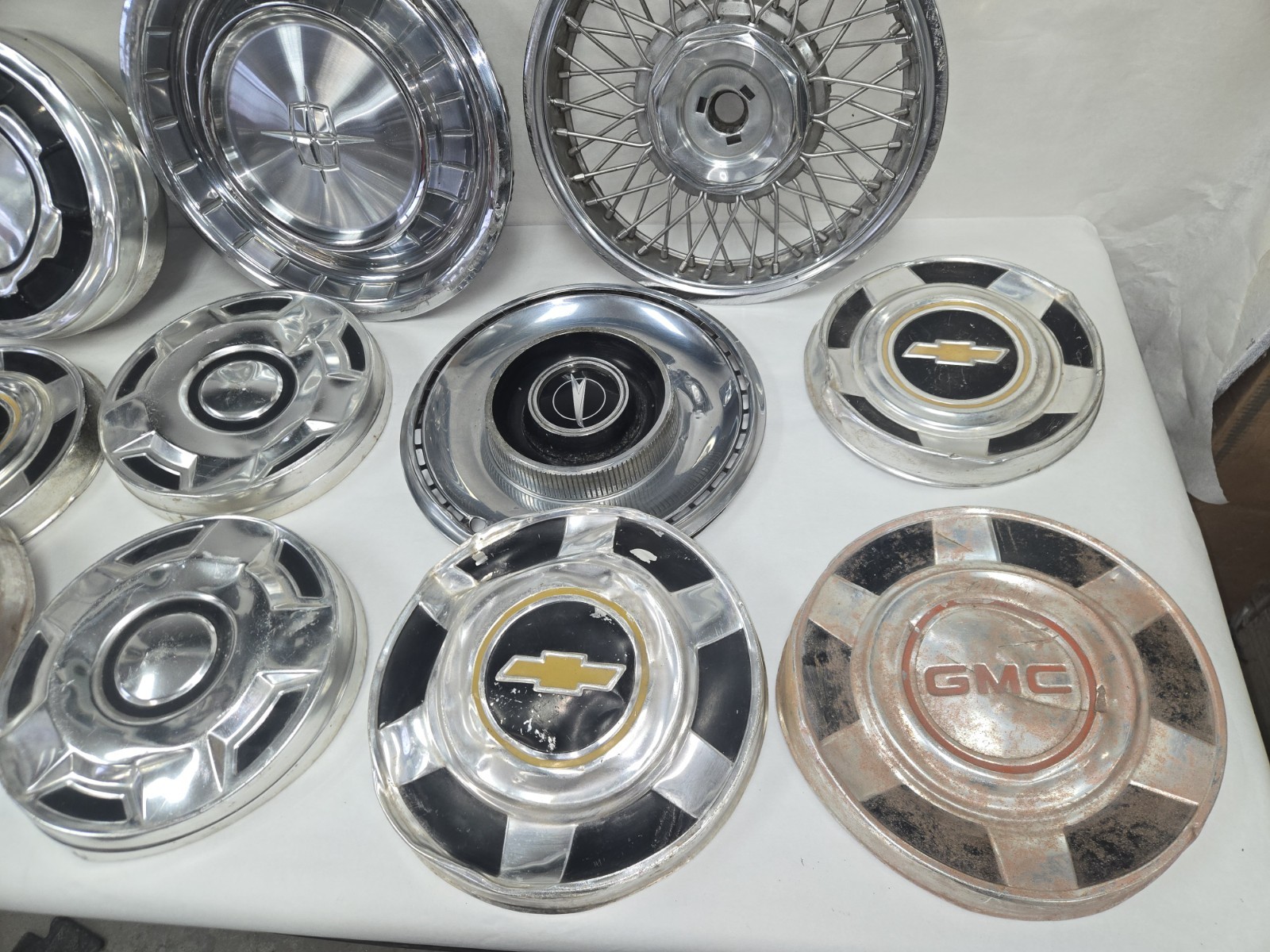 Lot of 15 automotive stainless steel hubcaps wheel covers are great for mancave target practice or Art Projects 89.00$