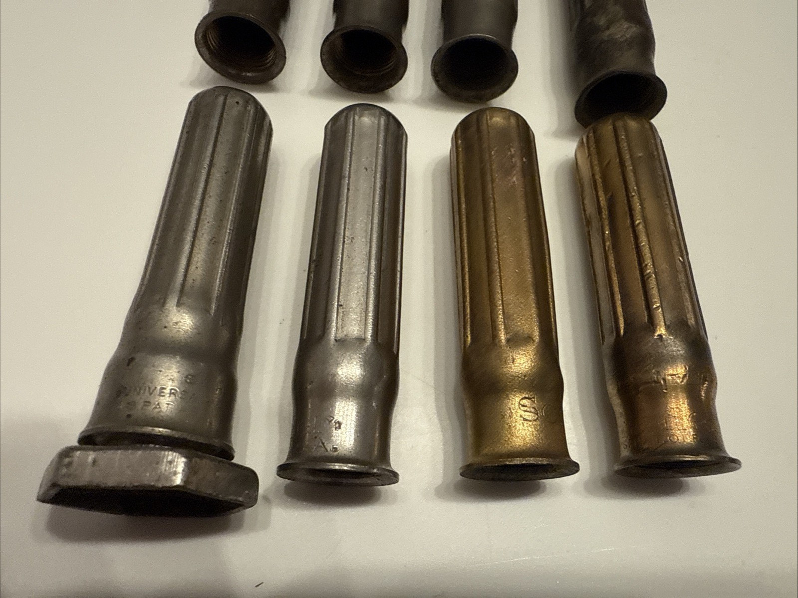 This lot of 8 antique Schrader valve stem dust caps/covers are in good used condition. One includes a Schrader nut. They are used and have some wear. One does have a dent in the side. One cap is unmarked and has a dent on the top. Please check out all the pictures and let me know if you have any questions. I ship within 1 to 2 business days. Thanks for checking out this posting. Model T Era Chevrolet Buick Cadillac Olds Oldsmobile Studebaker Ford Lincoln Dodge Maxwell Hudson Willys Overland Hupmobile Nash GM Saxon Renault American Simplex Mercer White Oakland Packard Stutz Item 676-3