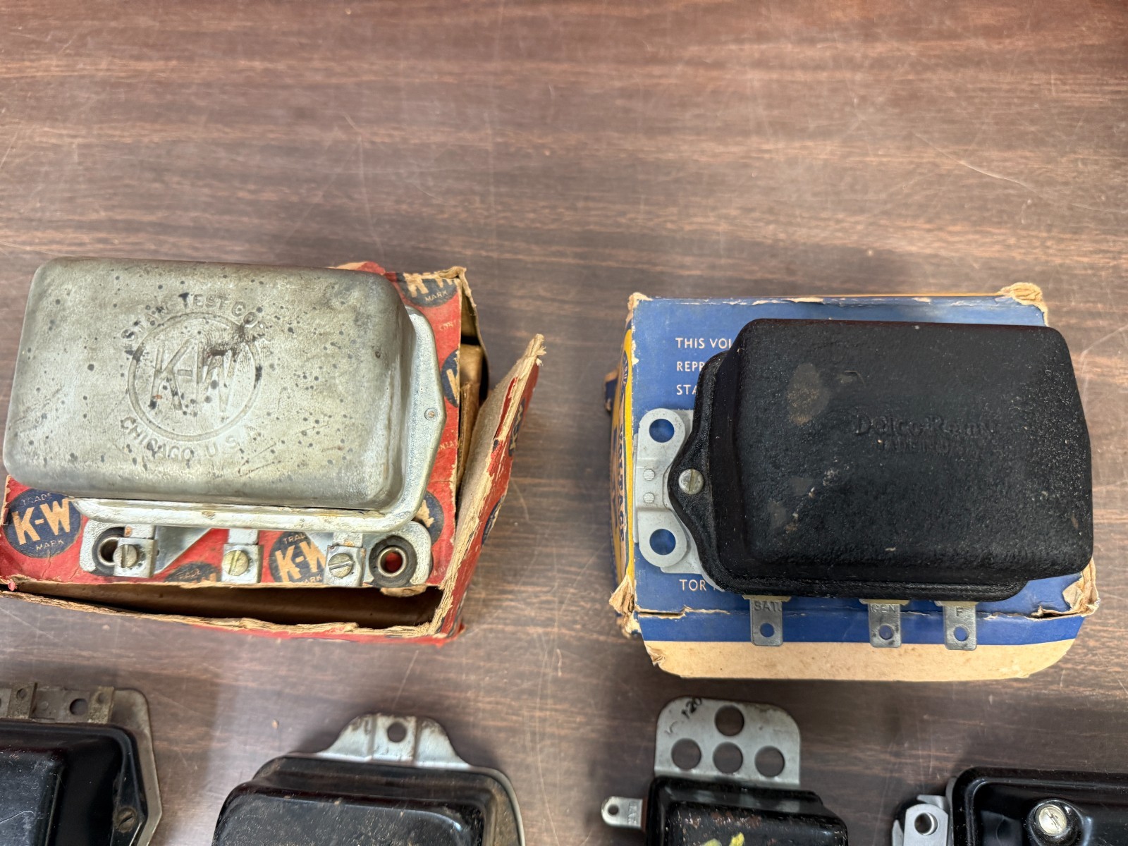 LOT OF 9 VINTAGE 1930s 1950s 1960s VOLTAGE REGULATORS YOU GET ALL 9 MOST LOOK NOS OR NORS MAYBE A COUPLE USED ONES HAVE SOME SURFACE RUST, PAINT CHIPS, ETC ALL SOLD AS IS!! NONE TESTED!!